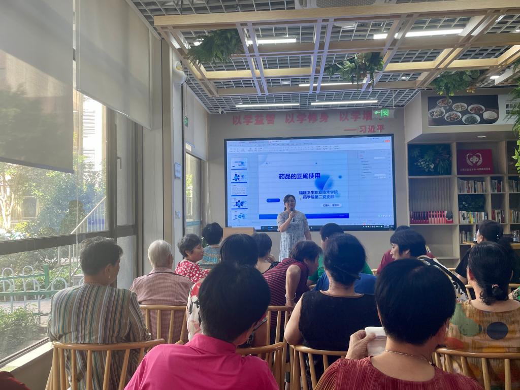 活動(dòng)伊始,藥學(xué)院第二黨支部書記劉丹丹帶來(lái)的科普小講座《藥品的使用與管理常識(shí)》,為社區(qū)聽眾科普了如何區(qū)分藥品與非藥品以及如何判別合格藥品與假劣藥品。接著,潘雪豐老師詳細(xì)地為社區(qū)居民講解了《藥品的正確使用》,如藥品的服用時(shí)間、食物對(duì)藥物的影響、常用制劑的用法與注意事項(xiàng)等,從日常用藥小知識(shí)出發(fā),引導(dǎo)社區(qū)居民安全合理用藥。
