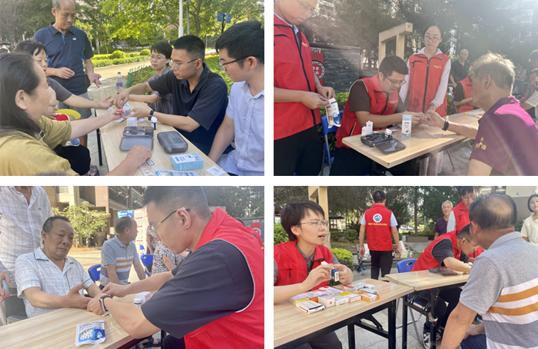 科普講座后,全體黨員為在場(chǎng)群眾免費(fèi)進(jìn)行用藥咨詢、血糖檢測(cè)等,熱情解答社區(qū)居民用藥疑慮,向社區(qū)居民展示家庭醫(yī)藥箱中常備的藥品,詳細(xì)講解各類藥品的正確服用方法和注意事項(xiàng),并特別強(qiáng)調(diào)了過(guò)期藥品的危害,提醒居民們要時(shí)刻關(guān)注藥品有效期,避免誤服過(guò)期藥品帶來(lái)健康風(fēng)險(xiǎn)。在血糖監(jiān)測(cè)過(guò)程中,針對(duì)居民提出的血糖問(wèn)題,黨員們耐心細(xì)致地進(jìn)行解答,并給予個(gè)人健康指導(dǎo),體現(xiàn)教師們服務(wù)社會(huì)、服務(wù)人民的高尚情懷。