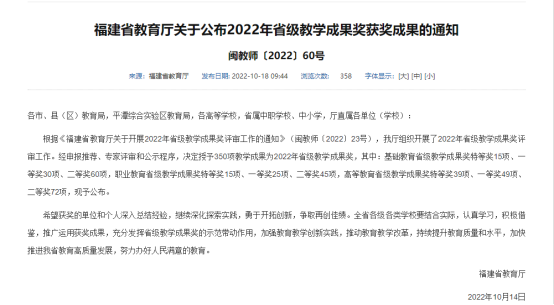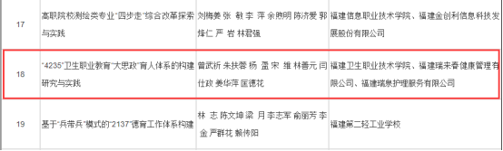 近日,福建省教育廳公布了2022年省級教學(xué)成果獎獲獎名單,由我校黨委書記曾武祈等人完成的《“4235”衛(wèi)生職業(yè)教育“大思政”育人體系的構(gòu)建研究與實踐》榮獲省級職業(yè)教育教學(xué)成果獎一等獎。