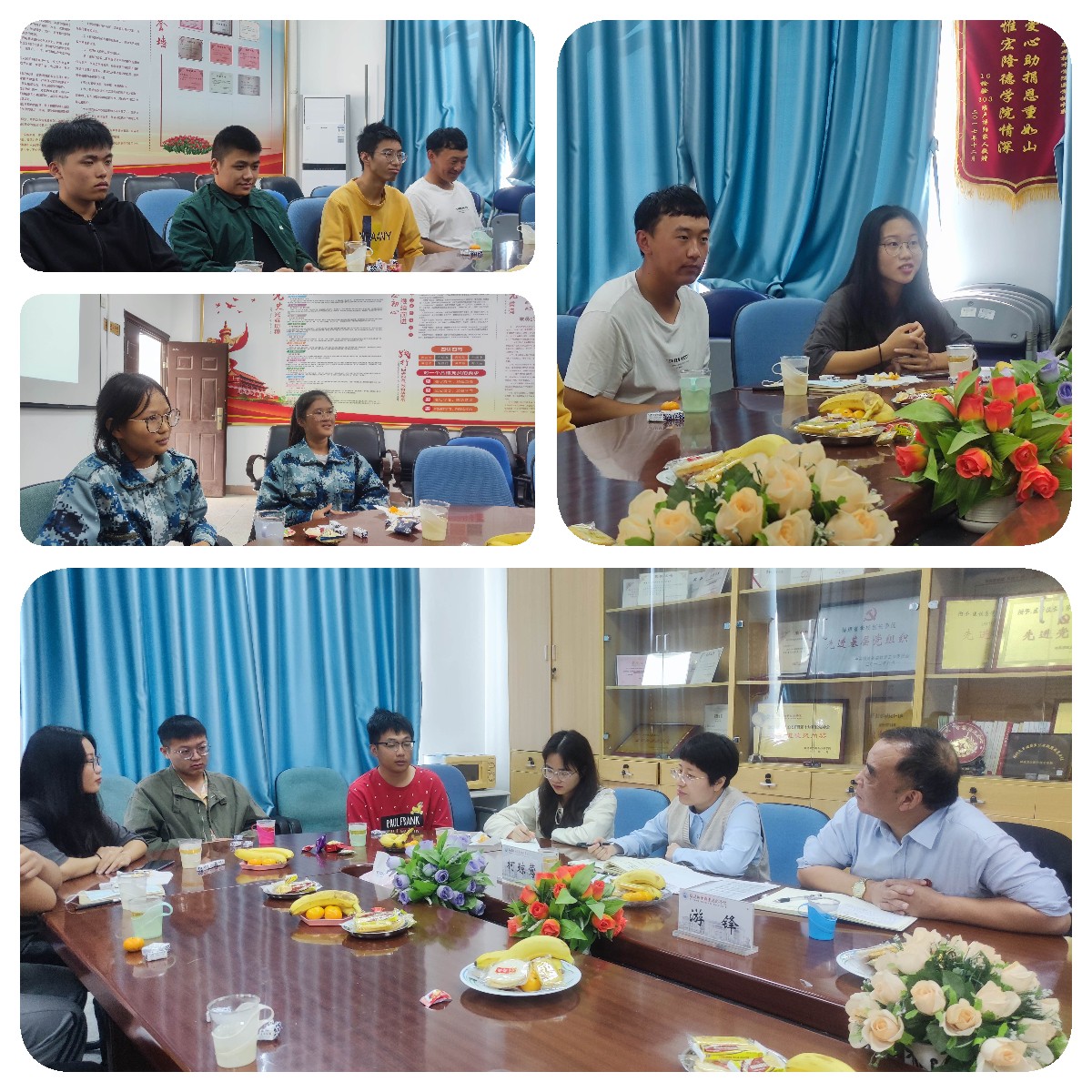 座談會(huì)上,同學(xué)們還介紹了本民族特色,分享了個(gè)人思想、學(xué)習(xí)、生活等情況,談了對學(xué)校發(fā)展建設(shè)的建議。從離家求學(xué)到獨(dú)立生活,從飲食習(xí)慣到宿舍起居,從興趣愛好到專業(yè)學(xué)習(xí),從實(shí)習(xí)計(jì)劃到未來就業(yè)……大家暢所欲言,氣氛溫馨而融洽。針對同學(xué)們的分享和提問,游鋒給予了詳細(xì)的建議指導(dǎo),并表示會(huì)將具體問題進(jìn)一步反饋相關(guān)部門,協(xié)調(diào)妥善解決。