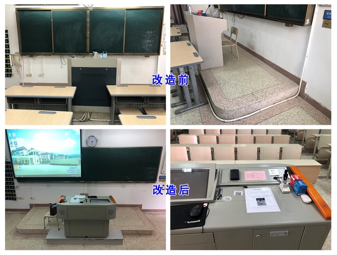 學(xué)校分批對教學(xué)樓教室進(jìn)行線路改造,將教室內(nèi)裸露的線纜重新更換并開槽鋪設(shè)暗線,解決教室線路老舊、投影不清晰等問題;升級教室麥克風(fēng)等設(shè)備,提高擴(kuò)聲質(zhì)量,營造優(yōu)質(zhì)教學(xué)環(huán)境。