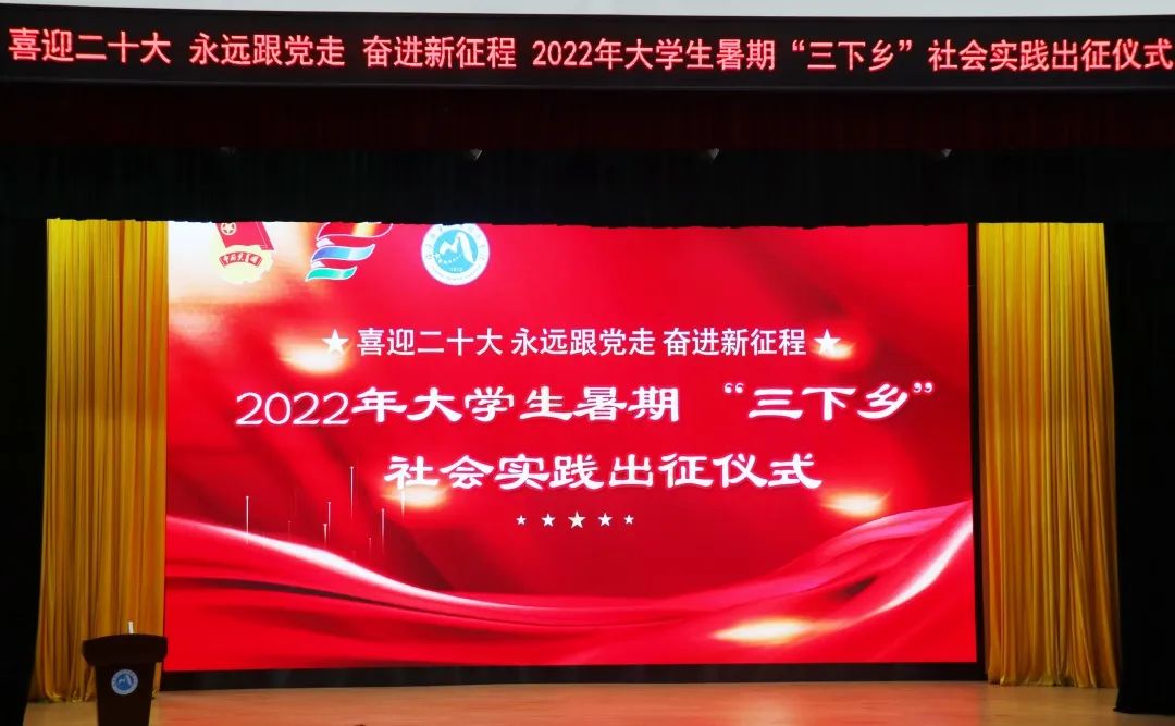 6月27日上午,我校在學(xué)術(shù)報(bào)告廳舉行“喜迎二十大 永遠(yuǎn)跟黨走 奮進(jìn)新征程”2022年大學(xué)生暑期“三下鄉(xiāng)”社會(huì)實(shí)踐出征儀式。副校長(zhǎng)黃銘珊,馬克思主義學(xué)院、團(tuán)委、各院系黨總支、團(tuán)總支負(fù)責(zé)人,全體21級(jí)學(xué)生輔導(dǎo)員與各院系社會(huì)實(shí)踐師生代表共200人參加儀式。