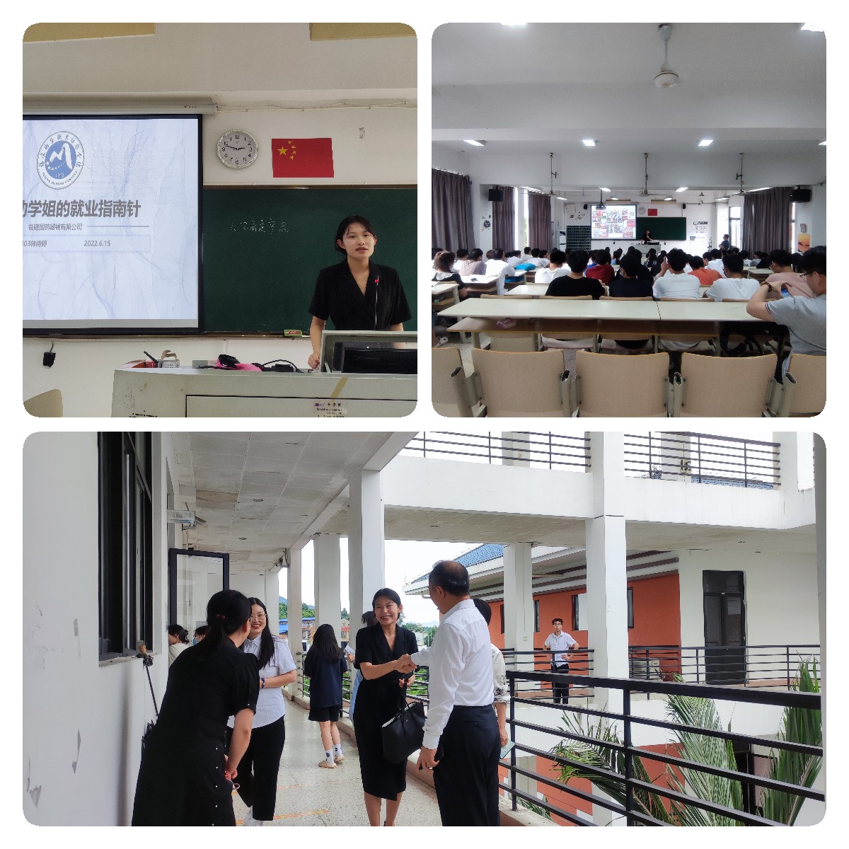 福建國藥器械有限公司本次招聘代表是公司副董事長助理、我校醫(yī)學(xué)影像技術(shù)專業(yè)畢業(yè)生林詩婷。應(yīng)醫(yī)學(xué)技術(shù)系邀請,林詩婷不僅介紹了公司情況和招聘崗位需求,還分享交流了自身在校的學(xué)習(xí)、實(shí)習(xí)、求職感悟及職場工作經(jīng)驗(yàn),為學(xué)弟學(xué)妹們送上一份誠意滿滿的“就業(yè)指南針”。許能鋒同林詩婷親切交流,歡迎優(yōu)秀校友返校招聘,為學(xué)弟學(xué)妹引路職場,同時表示希望更多的校友們能積極牽線搭建就業(yè)平臺,助力母校就業(yè)工作。