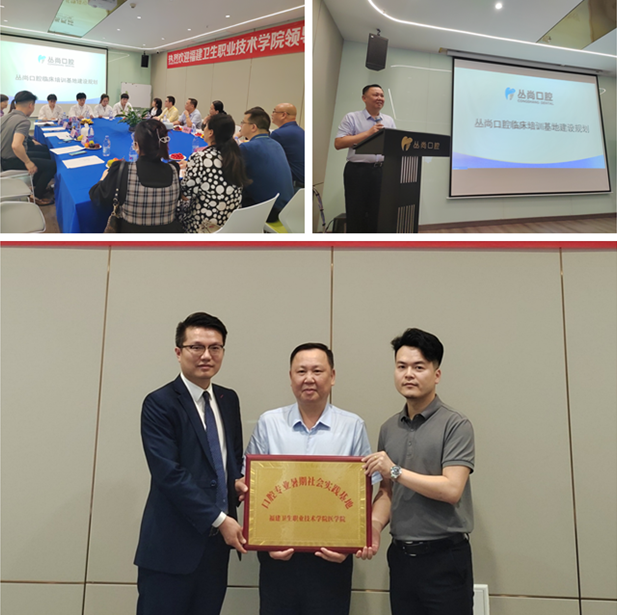 在叢尚口腔門診的座談會(huì)上,該企業(yè)陸煜昭院長簡要介紹了企業(yè)的組織架構(gòu)和經(jīng)營情況,并對(duì)叢尚口腔臨床培訓(xùn)基地建設(shè)規(guī)劃做了詳細(xì)介紹,表示出了高度的合作意愿,期待有更多我校優(yōu)秀學(xué)生加入到企業(yè)中來。曾武祈從學(xué)校歷史沿革、辦學(xué)規(guī)模、學(xué)科建設(shè)等方面介紹了學(xué)校的基本情況,并對(duì)企業(yè)所做的口腔臨床培訓(xùn)基地建設(shè)規(guī)劃表示充分肯定。希望以校企合作為契機(jī),進(jìn)一步加強(qiáng)雙方在人才培養(yǎng)方面的合作,提升人才培養(yǎng)質(zhì)量,滿足畢業(yè)生高質(zhì)量就業(yè)的迫切需求。座談會(huì)后,曾武祈為企業(yè)授牌,在開展暑期社會(huì)實(shí)踐方面達(dá)成初步合作。