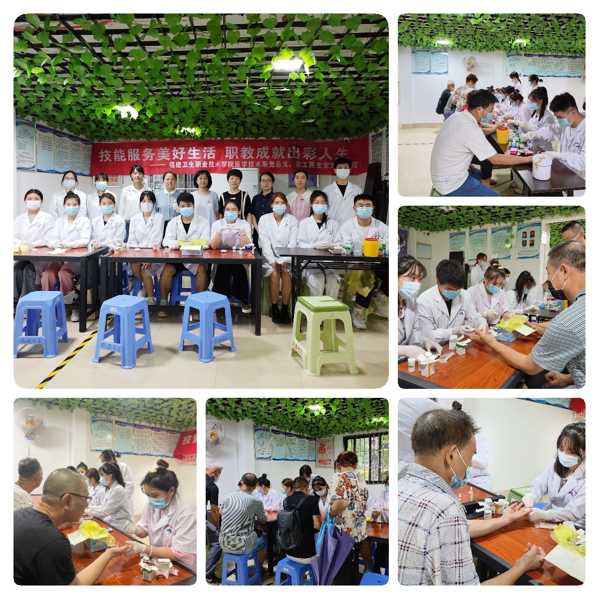 6月2日,醫(yī)學(xué)技術(shù)系黨總支聯(lián)合學(xué)校農(nóng)工民主黨支部前往福州茶園街道東浦社區(qū),開展“技能服務(wù)美好生活 職教成就出彩人生”健康義診服務(wù)活動。