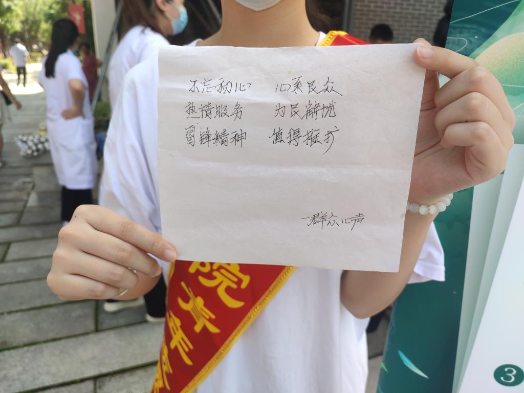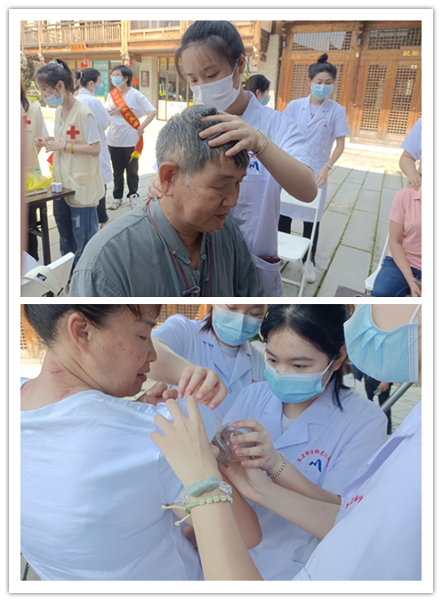 本次活動還邀請學(xué)校康健俱樂部的成員為居民提供按摩和撥火罐服務(wù),在藥香和煙火的氣息中,鄉(xiāng)鄰們享受著志愿隊員的“指尖巧技”,還有熱心居民寫下“不忘初心,心系民眾;熱情服務(wù),為民解憂;雷鋒精神,值得推廣”的珍貴留言,為我校義診志愿服務(wù)隊的辛勤付出點贊。