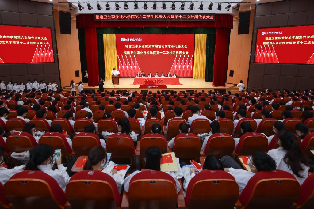 生逢盛世,使命在肩。2022年5月21日,福建衛(wèi)生職業(yè)技術學院第六次學生代表大會暨第十二次社團代表大會在學術報告廳勝利召開。福建衛(wèi)生職業(yè)技術學院黨委委員、副校長黃銘珊,黨委學生工作部部長陳俊穎、團委書記林桂松、各院系團總支負責人、各社團指導老師以及500余名學生代表參加,福建省學生聯(lián)合會駐會主席蘇弘戩、兄弟院校學生會、學生社團代表應邀參會。