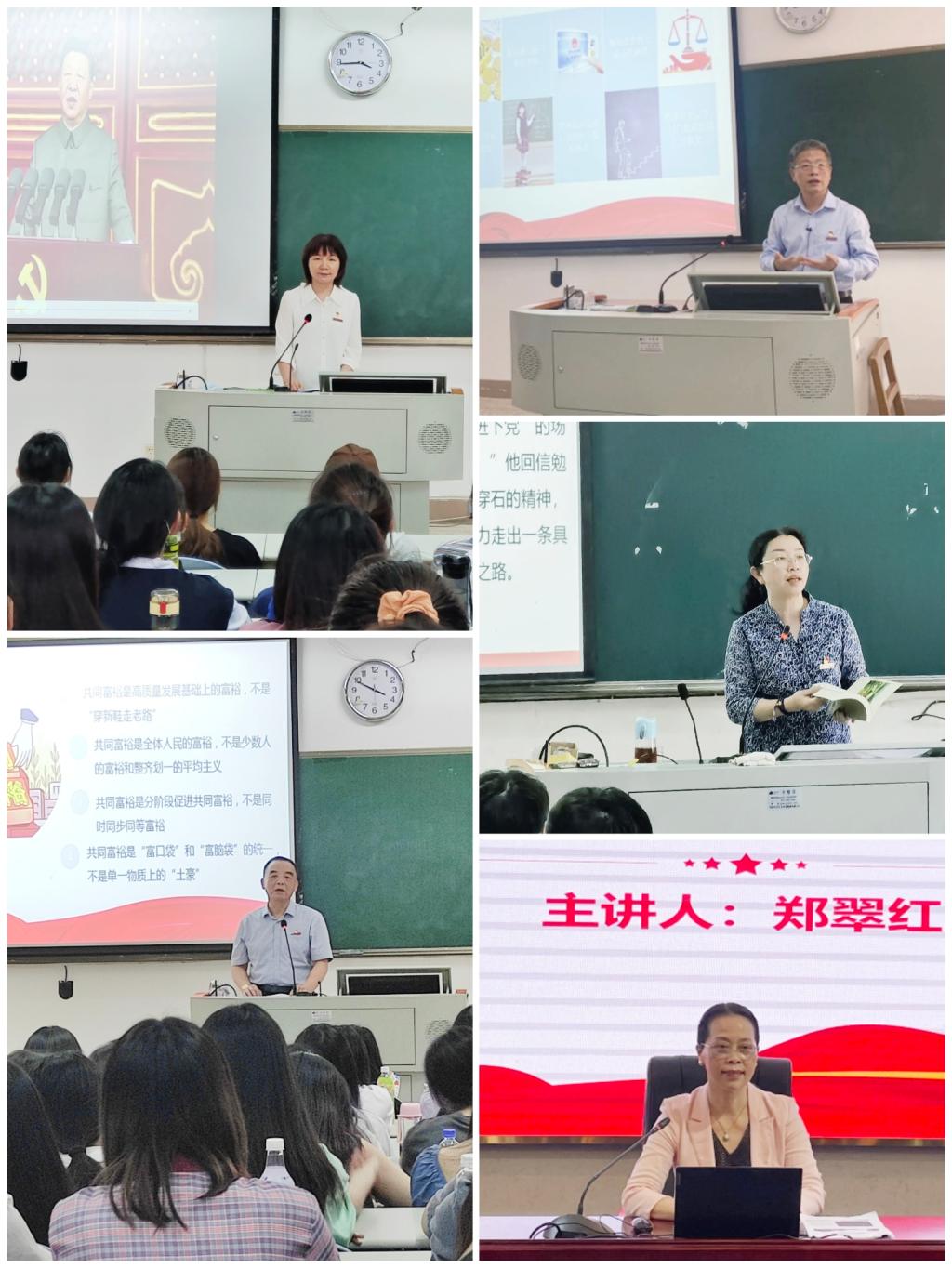 李美華、游鋒、陳貞健、黃銘珊、鄭翠紅帶領(lǐng)廣大師生回顧了我校在“十三五”期間,建設(shè)資助工作規(guī)范化的學(xué)生資助中心、精準(zhǔn)幫扶經(jīng)濟(jì)困難學(xué)生完成學(xué)業(yè),為社會培訓(xùn)鄉(xiāng)村醫(yī)生、輸送醫(yī)療護(hù)理員等助力共同富裕取得的實績。在此基礎(chǔ)上展望了我?!笆奈濉币?guī)劃的發(fā)展藍(lán)圖。通過他們的宣講,廣大師生受益匪淺,充分認(rèn)識到征途漫漫,惟有奮斗,只要堅持不懈地以實干創(chuàng)實績、以奮斗促富裕,定能匯聚起磅礴力量,讓共同富裕的美好圖景展現(xiàn)在神州大地。