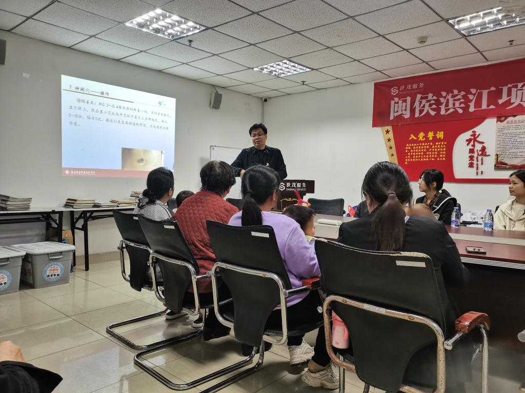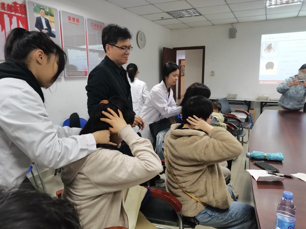 在健康服務(wù)環(huán)節(jié),醫(yī)學(xué)院教師第三黨支部書記陳銘為老人們帶來了“常用穴位與保健按摩”專題講座,深入淺出地講解中醫(yī)養(yǎng)生知識,到場師生協(xié)助指導(dǎo)社區(qū)居民穴位定位,體驗穴位按摩,讓社區(qū)居民受益匪淺。