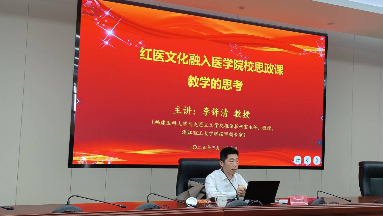 為全面落實立德樹人根本任務(wù),進(jìn)一步推動思政課教學(xué)改革創(chuàng)新,引導(dǎo)全校師生傳承紅色基因,感悟紅醫(yī)精神,3月27日,我校邀請福建醫(yī)科大學(xué)馬克思主義學(xué)院毛澤東思想和中國特色社會主義理論體系概論教研室主任李鋒清教授作題為《紅醫(yī)文化融入醫(yī)學(xué)院校思政課教學(xué)的思考》專題講座。講座由馬克思主義學(xué)院副院長來朋珍主持,馬克思主義學(xué)院全體專兼課教師、學(xué)生代表參加。