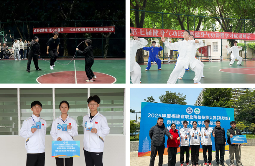 深入貫徹落實(shí)課程標(biāo)準(zhǔn)和國家學(xué)生體質(zhì)健康標(biāo)準(zhǔn)測試上報的相關(guān)文件精神,嚴(yán)格認(rèn)真進(jìn)行每年每生一次《國家學(xué)生體質(zhì)健康標(biāo)準(zhǔn)》測試工作,專門針對國體測試項目(如50米跑、坐位體前屈、立定跳遠(yuǎn))等進(jìn)行技巧指導(dǎo),對體質(zhì)薄弱學(xué)生進(jìn)行分組教學(xué)和個別輔導(dǎo),幫助他們建立信心,并將測試結(jié)果經(jīng)教育部門審核后及時上報并納入國家學(xué)生體質(zhì)健康標(biāo)準(zhǔn)數(shù)據(jù)管理系統(tǒng)。為提高教學(xué)質(zhì)量,體育部持續(xù)推行醫(yī)體融合的醫(yī)藥衛(wèi)生類專業(yè)體育課程教學(xué)改革,實(shí)施職業(yè)體育二十四式太極拳教、考分離,開設(shè)職業(yè)體能課程等,在實(shí)踐的同時,積極進(jìn)行理論總結(jié)提升。2021-2025年,老師積極申報各級各類教科研項目,打造創(chuàng)新服務(wù)團(tuán)隊,獲批校、廳級教科研項目8項,獲得省廳級教學(xué)技能競賽等3項。