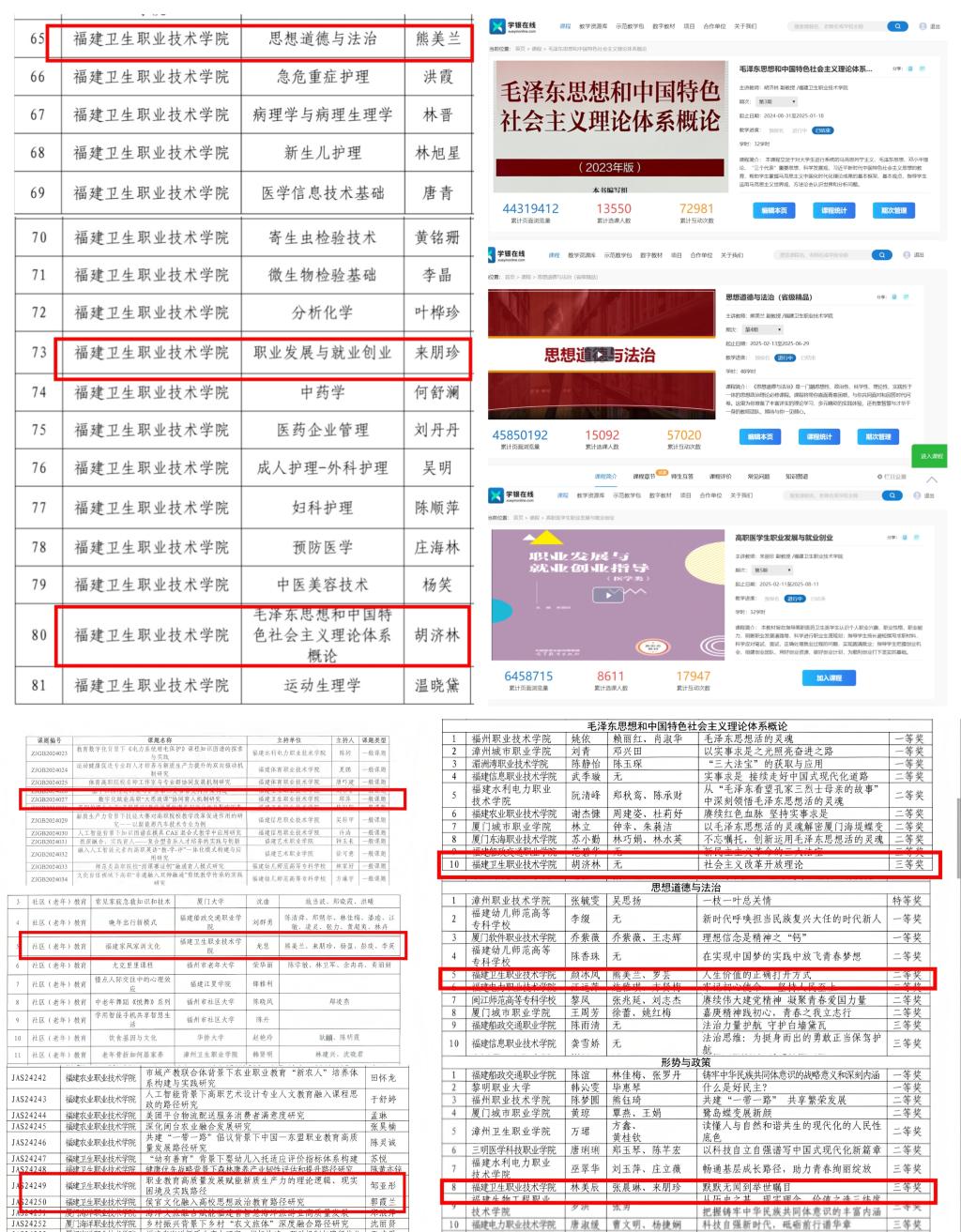 傳承薪火鑄醫(yī)魂,融合創(chuàng)新樹品牌。新開設(shè)《紅醫(yī)薪火》特色選修課;打造“紅醫(yī)薪火”主題特色實(shí)踐;推送《紅色華佗:傅連暲》等13個紅醫(yī)系列微課;完成《建國前后紅色閩醫(yī)精神及當(dāng)代價值研究》調(diào)研報告;聯(lián)合古田會議紀(jì)念館開展《紅古田·紅醫(yī)頌·紅故事》三紅聯(lián)引、“理論、情境、實(shí)踐”三課堂聯(lián)動系列“大思政課”活動,獲新華網(wǎng)、東南網(wǎng)、福建省教育廳、福建教育微言、福建高校思政網(wǎng)、福建衛(wèi)生健康新聞網(wǎng)、全國高職高專院校思想政治理論課建設(shè)聯(lián)盟網(wǎng)等主流媒體報道。