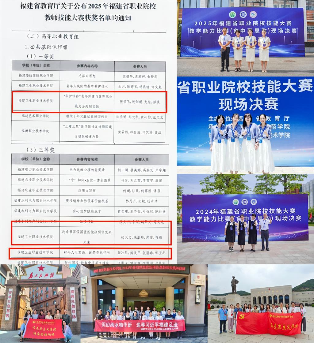 以賽促教強(qiáng)師能,錘煉本領(lǐng)礪良匠。積極組織教師參加教學(xué)比賽,62人次獲省級及以上教學(xué)比賽獎項(xiàng)。其中,獲福建省職業(yè)院校技能競賽教師教學(xué)能力比賽一等獎、二等獎等共計33個獎次;1個團(tuán)隊(duì)被福建省教育廳推薦參加第四屆全國高校思政課教學(xué)展示活動。