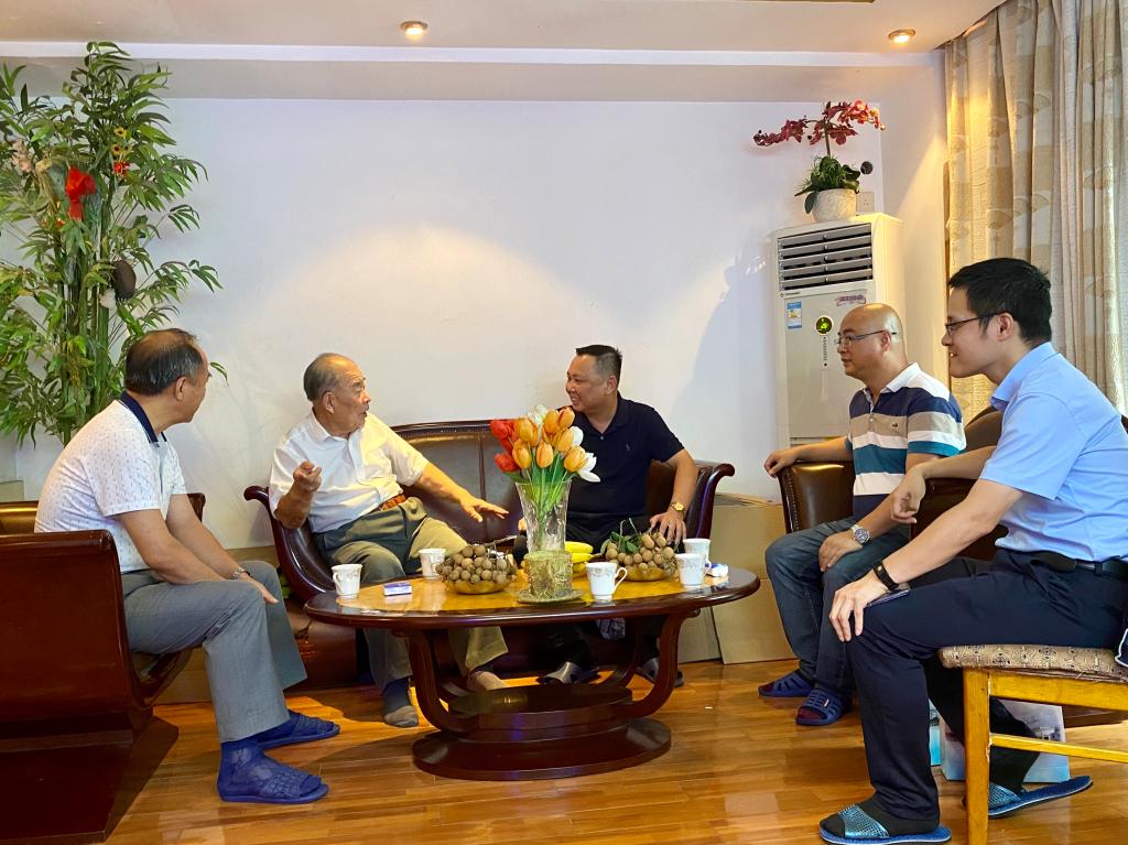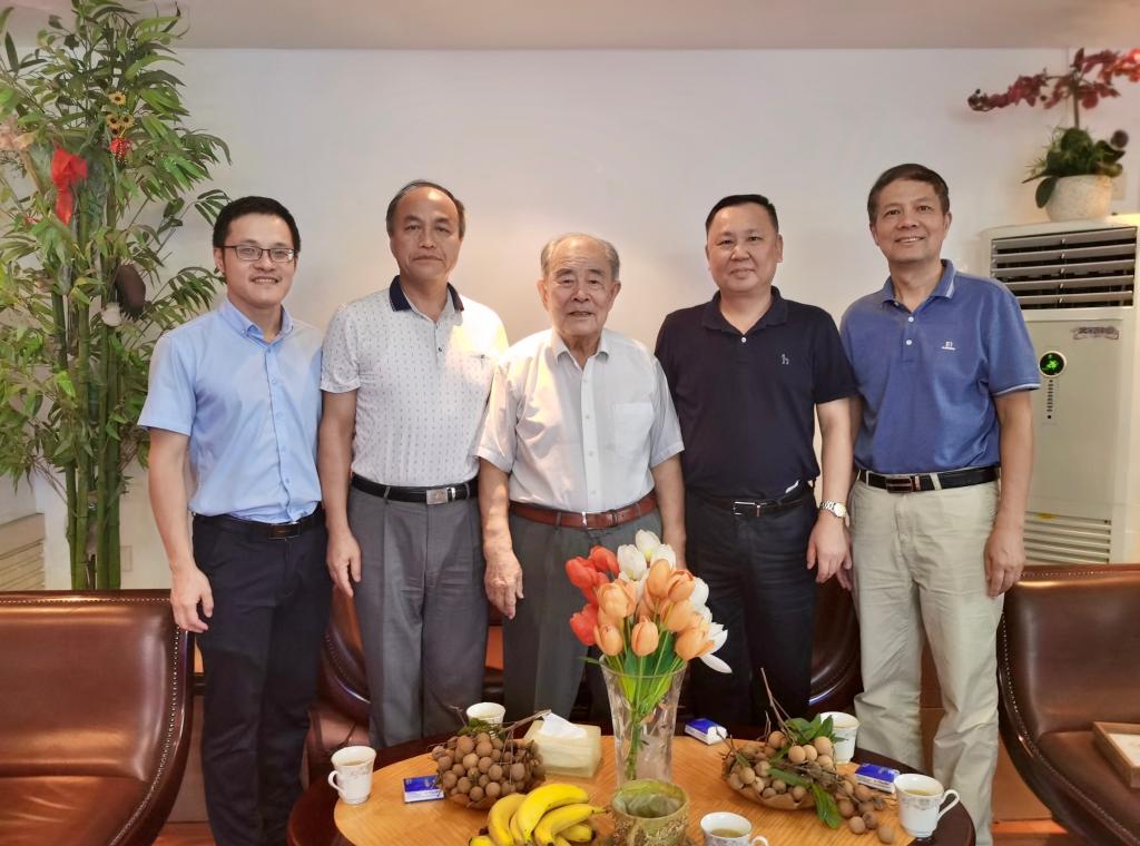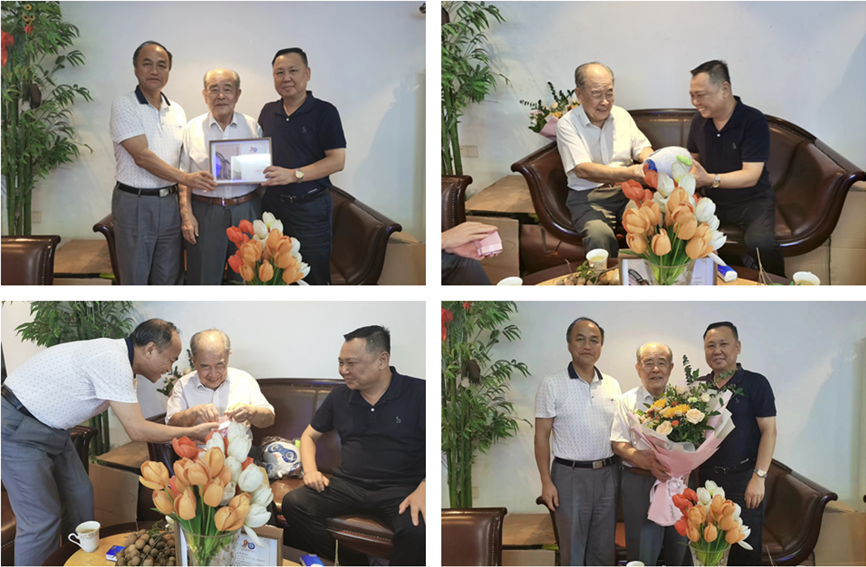 曾武祈代表學(xué)校向陳奎校友贈送了精心準備的110周年校友紀念卡、校園吉祥物和?;?、校標,并獻上鮮花??粗o念卡上的老照片,陳奎校友回憶起當年在母校的學(xué)習(xí)、生活,非常驚喜和感動。曾武祈、許能鋒向陳奎校友介紹了學(xué)校近年發(fā)展情況,特別是雙高校建設(shè)以及學(xué)校的發(fā)展規(guī)劃。陳奎校友十分關(guān)心母校的發(fā)展,為母校取得的成績感到由衷地高興。