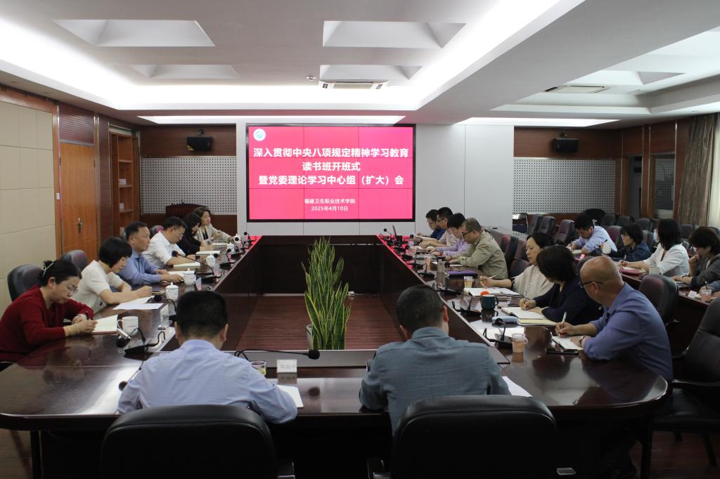 4月10日,我校在厚德樓四樓會議室舉行深入貫徹中央八項規(guī)定精神學習教育讀書班開班式暨黨委理論學習中心組(擴大)會議,校黨委書記曾武祈主持開班式,校領導、全體中層正職(含主持工作)參加會議。
