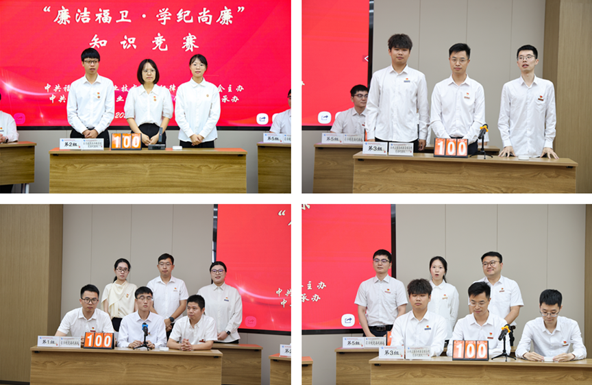 此次知識競賽緊密圍繞習(xí)近平總書記關(guān)于加強黨的作風(fēng)建設(shè)的重要論述、中央八項規(guī)定及其實施細則、中國共產(chǎn)黨紀律處分條例、黨政機關(guān)厲行節(jié)約反對浪費條例等內(nèi)容展開。各學(xué)院選派的五支師生代表隊在“必答題”“搶答題”“風(fēng)險題”這三個環(huán)節(jié)進行了精彩比拼,活動現(xiàn)場氣氛熱烈,參賽選手精神飽滿、沉著冷靜,既展現(xiàn)出扎實的政治理論素養(yǎng),又展示了團隊之間的緊密協(xié)作精神。