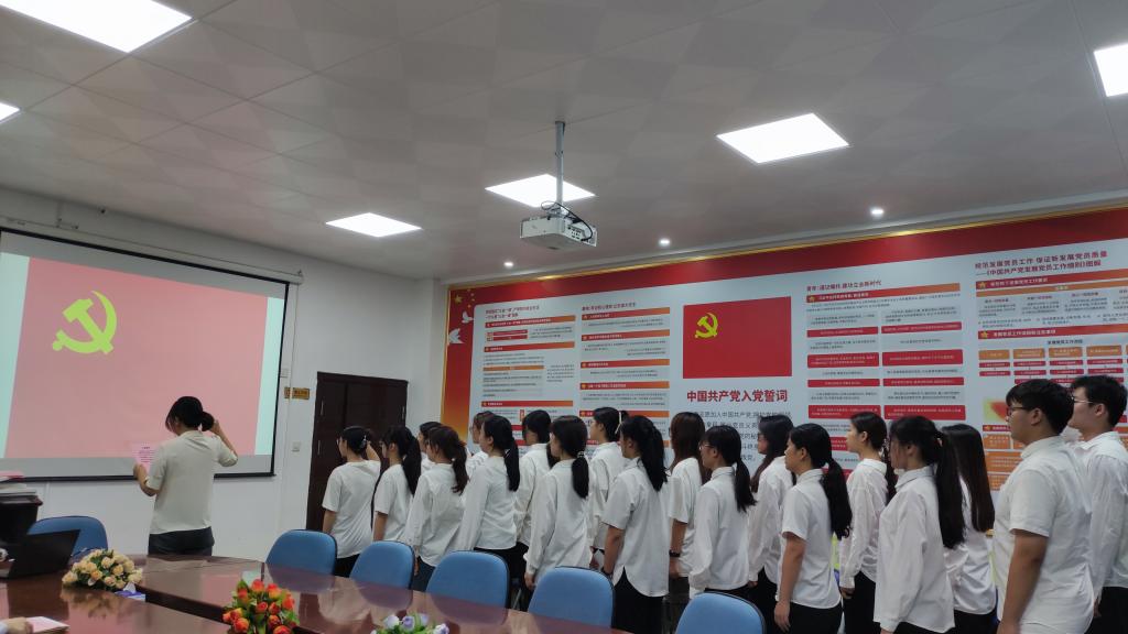 柯瓊鶯同志代表學(xué)院黨委發(fā)言。她向新入黨的同志表示祝賀,并提兩點希望:一是銘記一生堅守的入黨誓詞。要時時對照誓詞檢視自己,堅定人生的航向,用一生的行動去踐行今天向黨許下的鄭重誓言。二是爭當(dāng)一面閃光的先鋒旗幟。要繼續(xù)積蓄能量,向優(yōu)秀榜樣學(xué)習(xí),持續(xù)學(xué)好黨的創(chuàng)新理論和專業(yè)知識,努力磨練專業(yè)技能,進一步成長成熟,為黨和人民的事業(yè)奮斗拼搏!