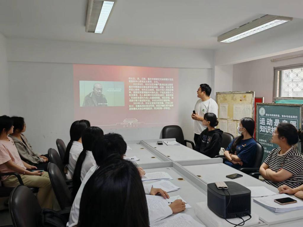 公共衛(wèi)生與健康管理學(xué)院黨總支第二支部于2024年6月6日開(kāi)展支部書(shū)記上黨課活動(dòng),張凱捷同志圍繞《中國(guó)共產(chǎn)黨紀(jì)律處分條例》對(duì)支部黨員開(kāi)展了黨紀(jì)學(xué)習(xí)教育。本次黨課旨在進(jìn)一步增強(qiáng)師生黨員的紀(jì)律規(guī)矩意識(shí)、強(qiáng)化底線(xiàn)紅線(xiàn)思維,真正將守紀(jì)律、講規(guī)矩、知敬畏、存戒懼根植于心。