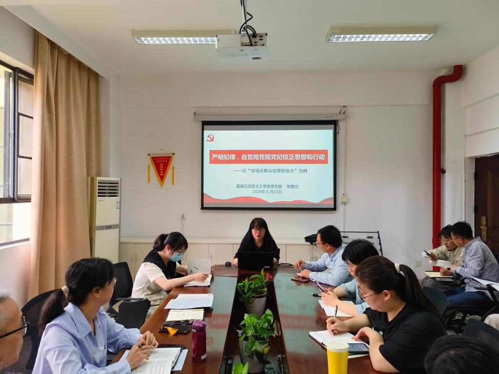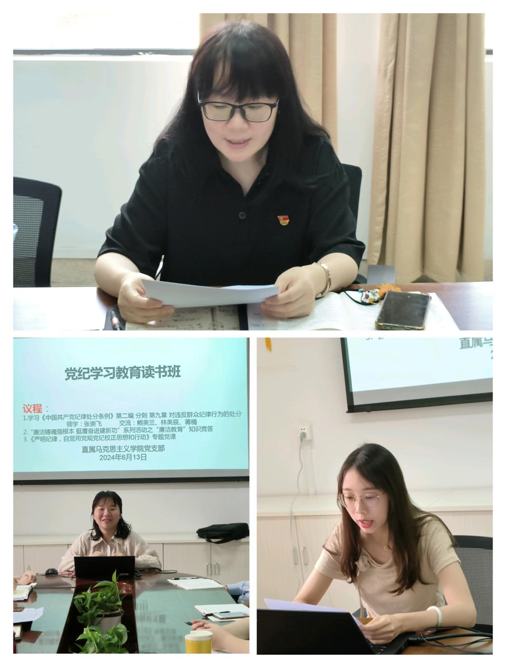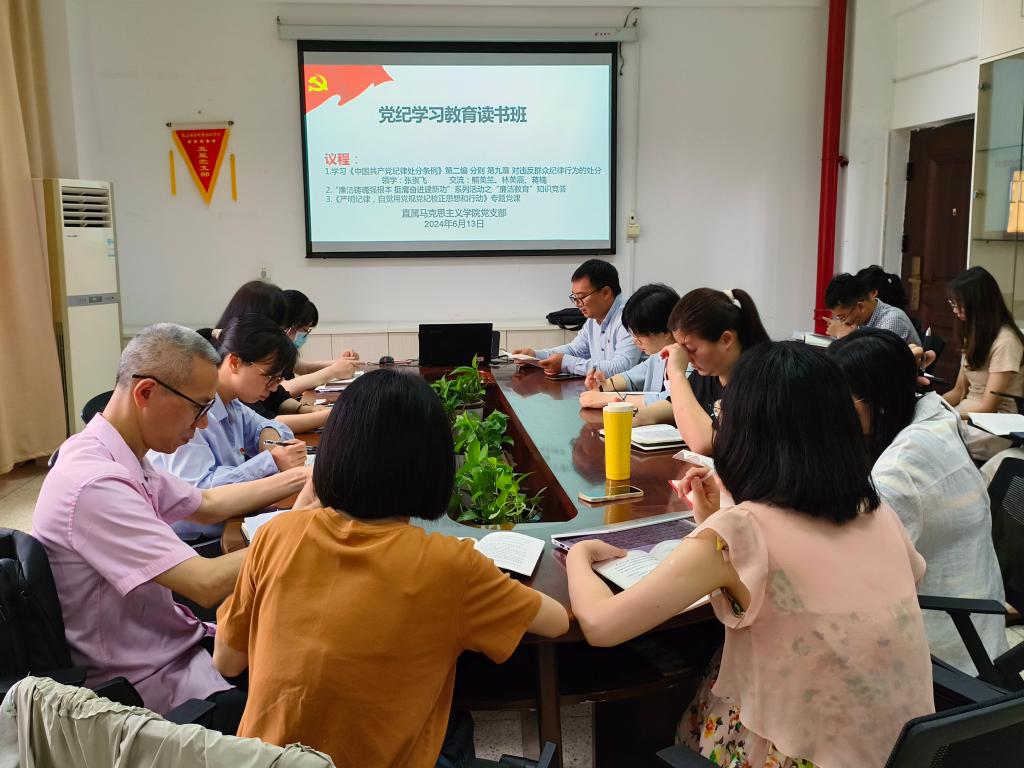 為嚴明黨的群眾紀律,進一步走好群眾路線,2024年6月13日,直屬馬克思主義學院黨支部黨紀學習教育讀書班在厚德樓107會議室圍繞《中國共產(chǎn)黨紀律處分條例》開展第五次集體學習活動。