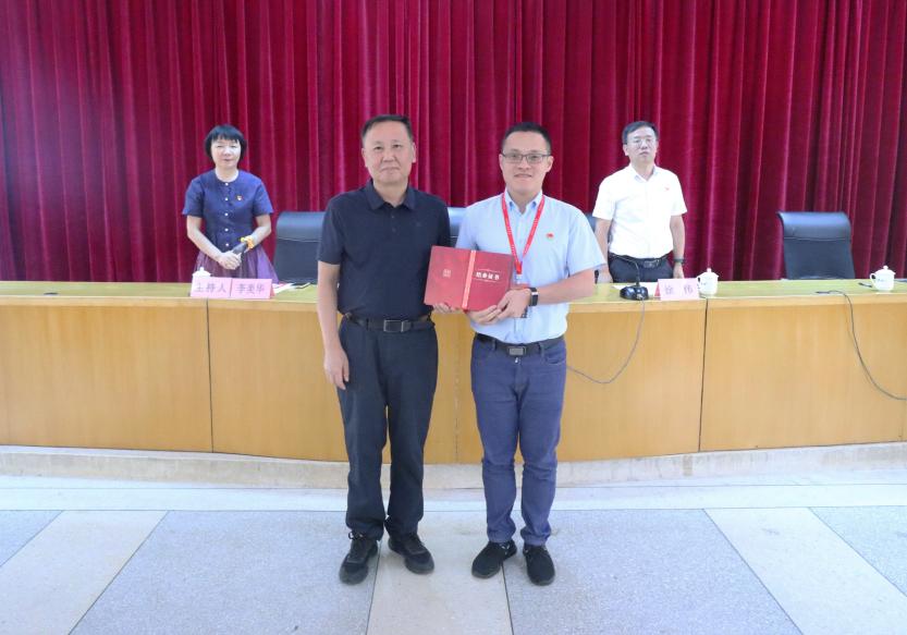 校黨委書記曾武祈為培訓班班長、學員代表黃曦頒發(fā)結(jié)業(yè)證書。