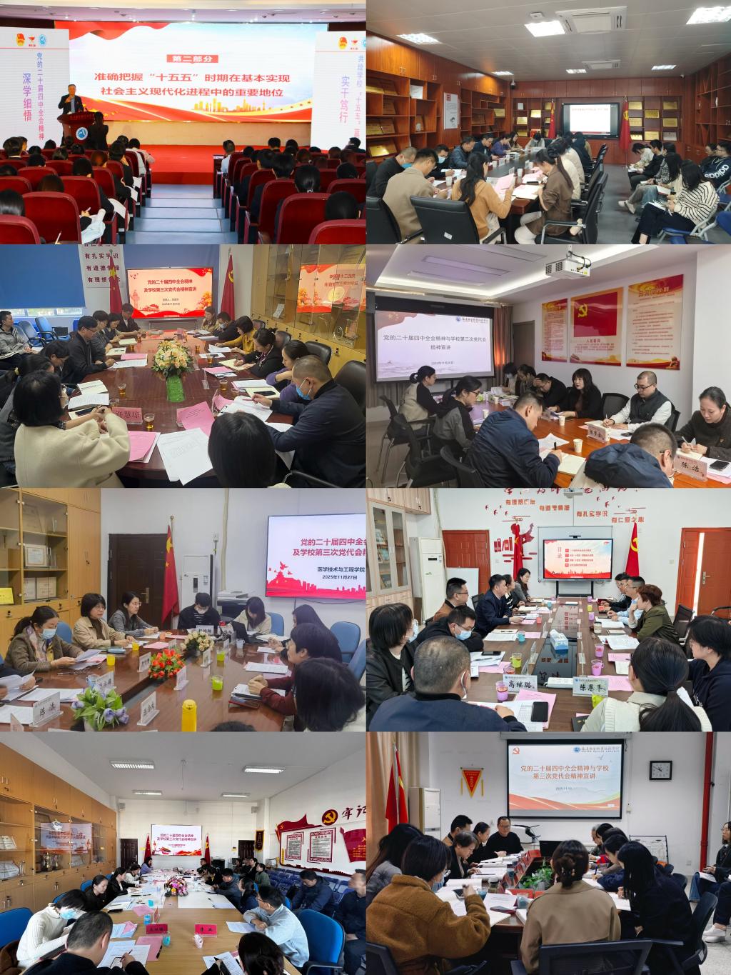 黨委副書(shū)記李美華、紀(jì)委書(shū)記林玲、副校長(zhǎng)黃銘珊、周雄、朱扶蓉,分別圍繞黨的二十屆四中全會(huì)核心要義進(jìn)行系統(tǒng)闡釋,并深入介紹了學(xué)校第三次黨代會(huì)提出的戰(zhàn)略任務(wù)。強(qiáng)調(diào),要切實(shí)增強(qiáng)貫徹落實(shí)全會(huì)精神的政治自覺(jué)、思想自覺(jué)、行動(dòng)自覺(jué),立足學(xué)院發(fā)展實(shí)際科學(xué)謀劃“十五五”時(shí)期規(guī)劃,將全會(huì)精神與學(xué)校黨代會(huì)精神精準(zhǔn)轉(zhuǎn)化為推動(dòng)各二級(jí)學(xué)院高質(zhì)量發(fā)展的具體行動(dòng),確保會(huì)議精神落地生根。要以學(xué)校第三次黨代會(huì)勝利閉幕為契機(jī),進(jìn)一步統(tǒng)一思想,凝聚共識(shí),以高質(zhì)量教育助力教育強(qiáng)國(guó)、教育強(qiáng)省建設(shè),為“健康中國(guó)”“健康福建”建設(shè)貢獻(xiàn)校地協(xié)同發(fā)展力量。
