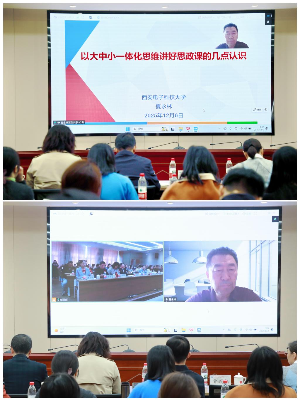 全國(guó)網(wǎng)絡(luò)教學(xué)名師、西安電子科技大學(xué)夏永林教授作題為《以大中小一體化思維講好思政課的幾點(diǎn)認(rèn)識(shí)》的主旨報(bào)告。報(bào)告從“一體化的由來(lái)、關(guān)鍵與實(shí)踐路徑”三個(gè)維度展開(kāi),系統(tǒng)闡釋了大中小學(xué)思政課一體化是遵循認(rèn)知規(guī)律、教育基本規(guī)律和思想政治教育規(guī)律的必然要求。參會(huì)教師受益匪淺,紛紛表示,將把一體化育人思維融入教學(xué)設(shè)計(jì),立足學(xué)段特點(diǎn),深挖文化資源,讓思政課真正走進(jìn)學(xué)生心靈。