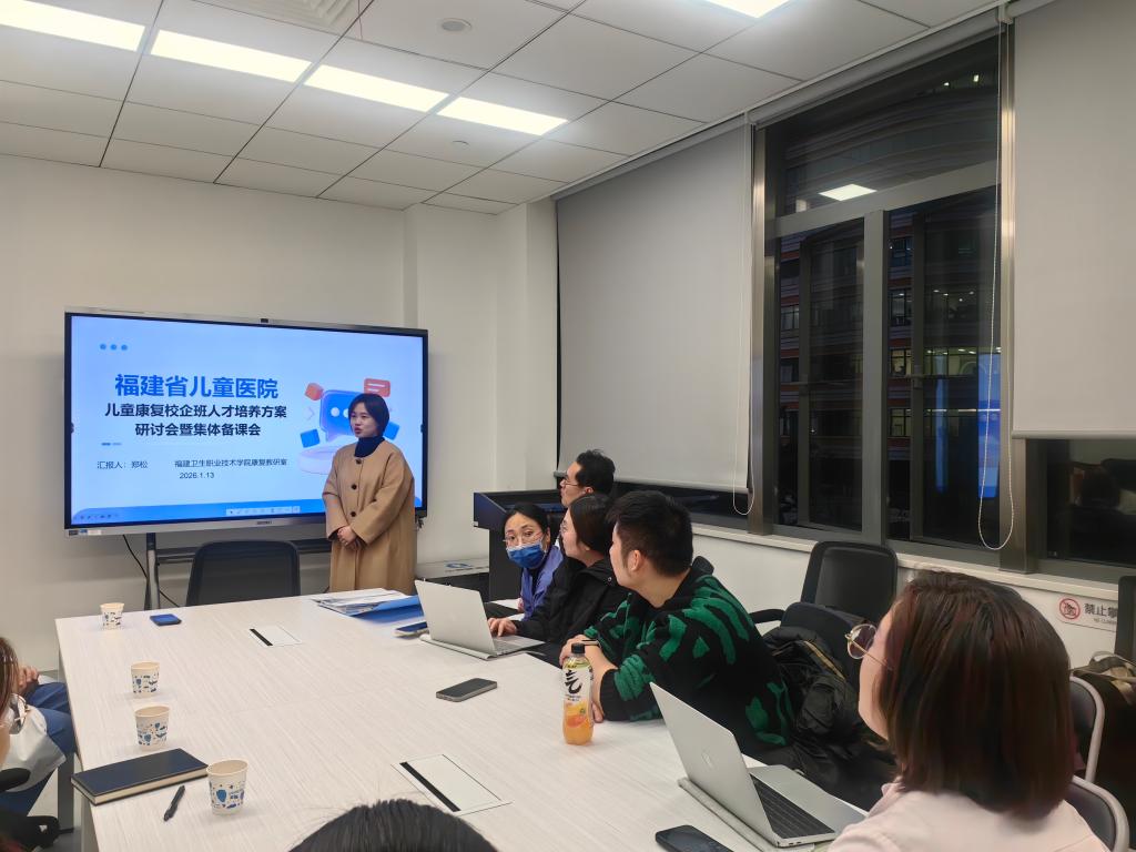 為深化產(chǎn)教融合、筑牢校企協(xié)同育人根基,進一步規(guī)范教學流程、提升人才培養(yǎng)精準度,1月13日,我校與福建省兒童醫(yī)院聯(lián)合開展校企班教學研討活動。我??祻椭委熂夹g(shù)專業(yè)老師與福建省兒童醫(yī)院康復科李民主任等團隊核心骨干齊聚一堂,重點推進集體備課工作,同步研討修訂25級康復治療技術(shù)兒童康復班人才培養(yǎng)方案及實習大綱。