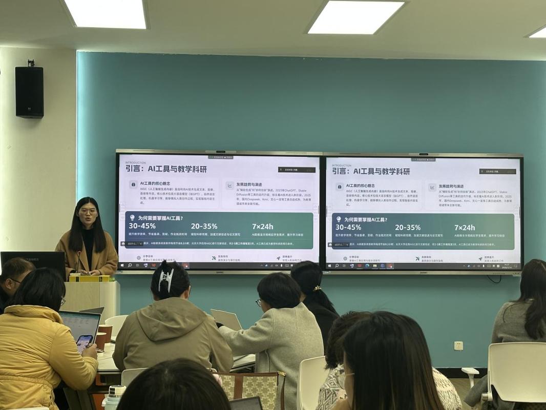 在專題分享環(huán)節(jié),林雅珠老師以“AI工具簡單應(yīng)用分享”為題作報(bào)告。內(nèi)容從AI工具在教學(xué)科研中的趨勢與價(jià)值切入,逐步展開對主流工具的分類與適用場景分析,重點(diǎn)講解了提示詞優(yōu)化的五大核心技巧,并結(jié)合教學(xué)實(shí)例進(jìn)行逐步解析。最后通過實(shí)時(shí)操作,現(xiàn)場演示了AI在課程備課、資源生成與科研輔助中的實(shí)際應(yīng)用,為與會教師將AI融入日常教學(xué)提供了清晰的方法路徑與可遷移的操作范式。