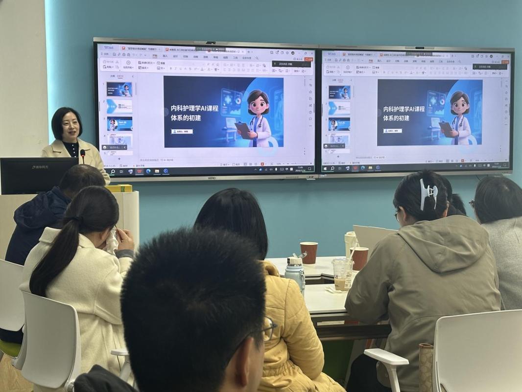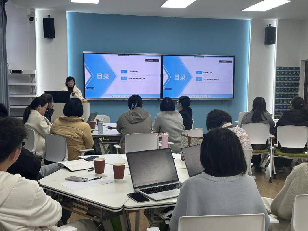 隨后,林偉老師以“內(nèi)科護(hù)理學(xué)AI課程體系的初建”為題,分享了前沿探索成果。首先從理論層面剖析了AI輔助教學(xué)對提升教育質(zhì)量、實(shí)現(xiàn)個(gè)性化學(xué)習(xí)的重要意義,接著重點(diǎn)介紹了《成人護(hù)理-內(nèi)科護(hù)理》課程在AI賦能下的體系構(gòu)建思路與初步實(shí)踐,展示了如何利用技術(shù)工具重構(gòu)教學(xué)邏輯與知識圖譜,為構(gòu)建智能化、自適應(yīng)的護(hù)理專業(yè)課程體系提供了有價(jià)值的雛形模型。