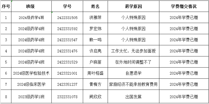 關于闕欣欣、洪雅萍、羅宏煒等8名學生退學的公示