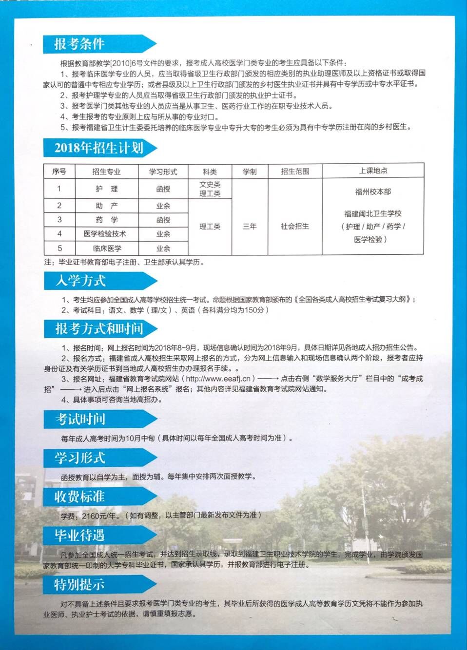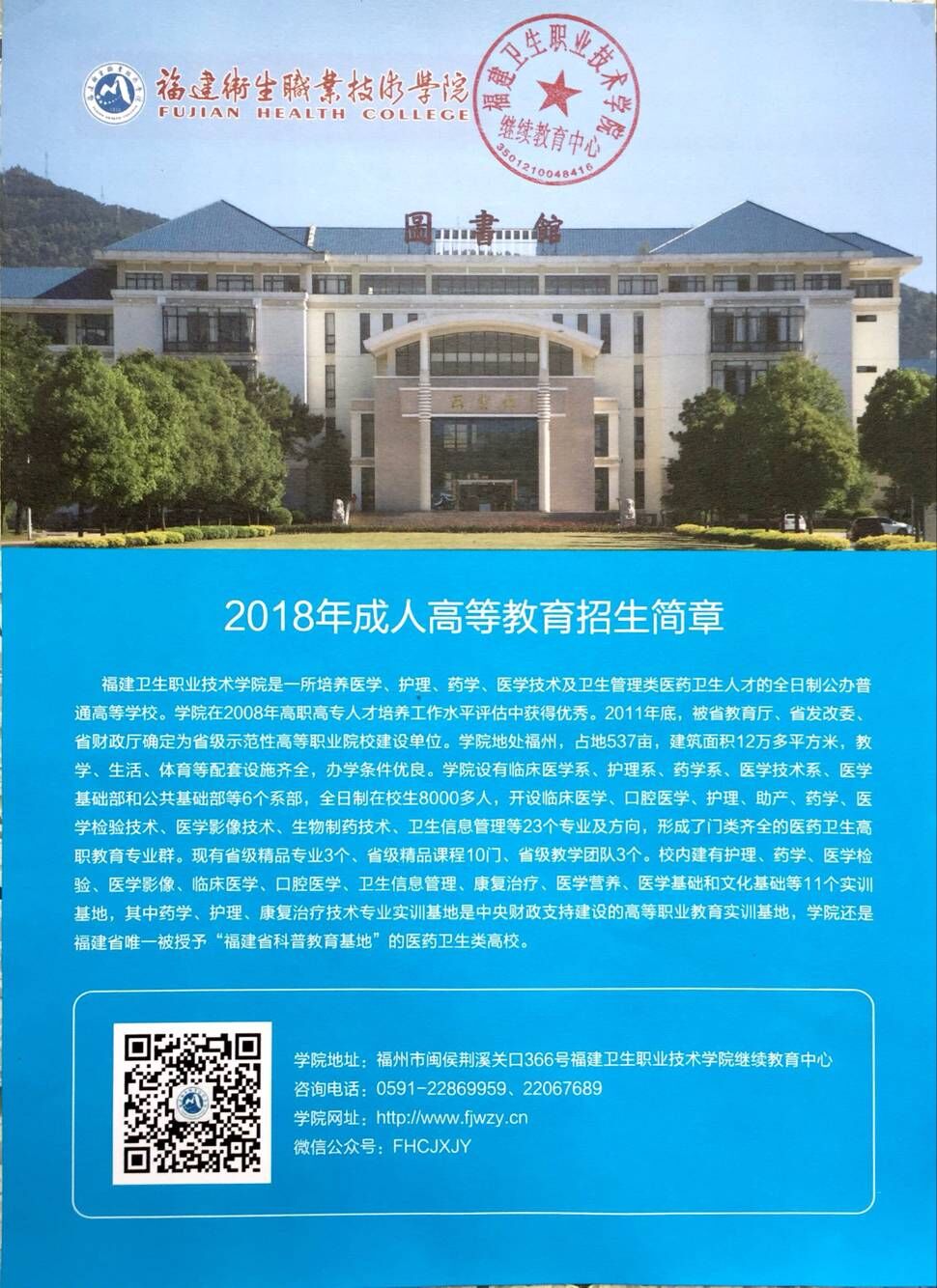 2018年福建衛(wèi)生職業(yè)技術(shù)學(xué)院成人教育招生簡章