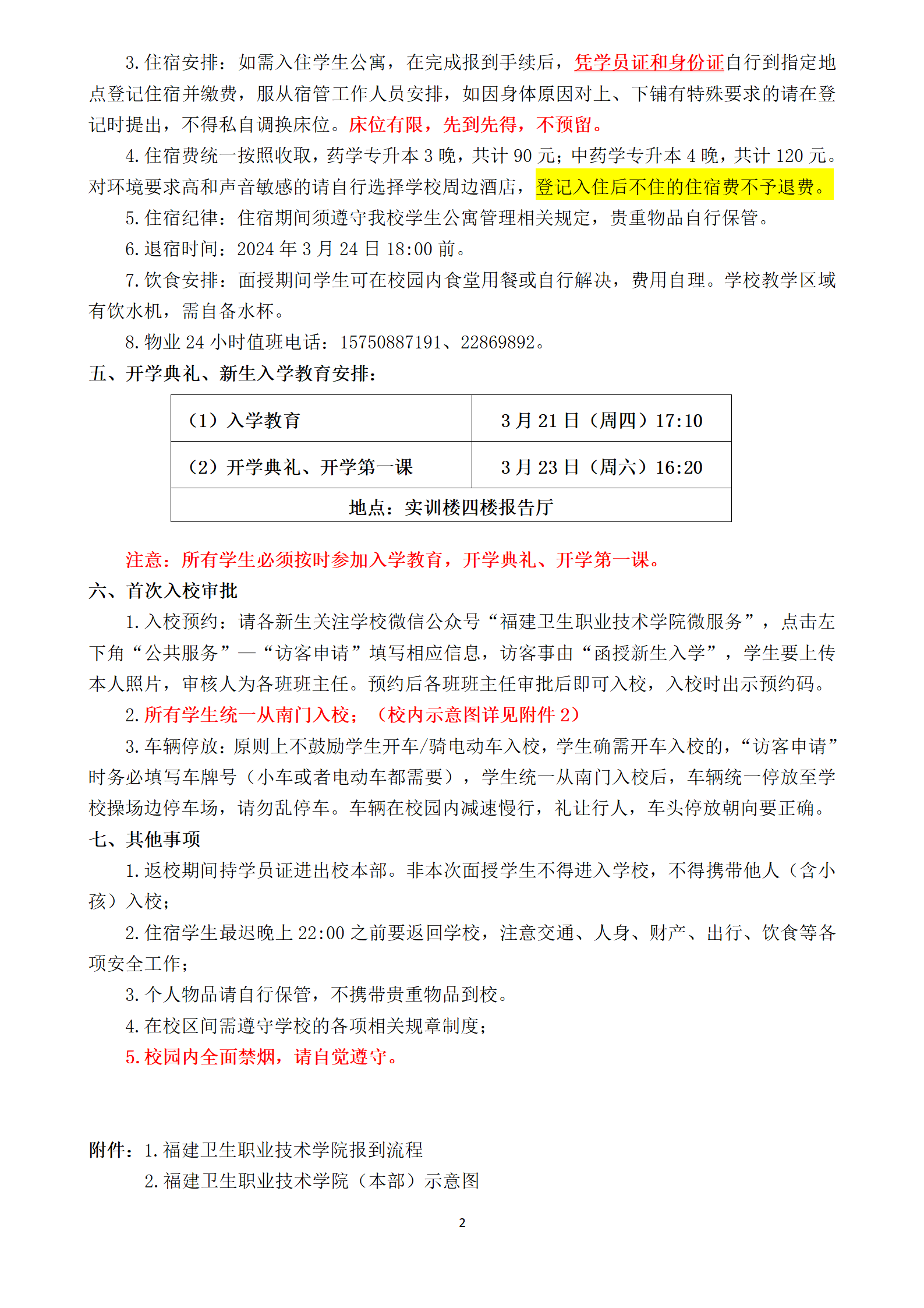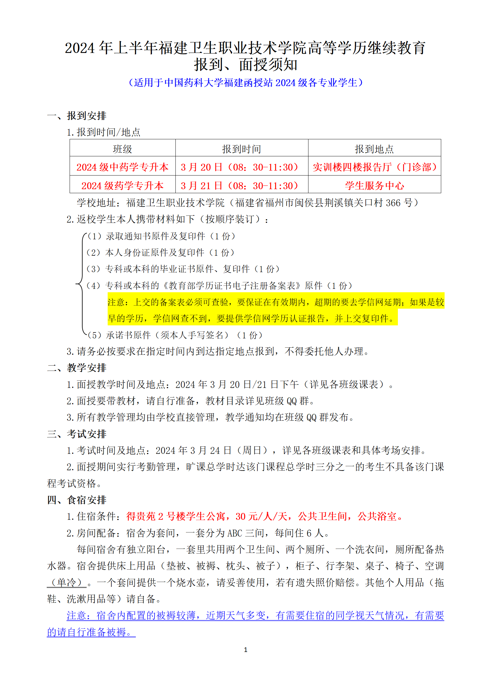 福建衛(wèi)生職業(yè)技術(shù)學(xué)院高等學(xué)歷繼續(xù)教育返校面授須知(適用于中國藥科大學(xué)福建函授站2024級各專業(yè)學(xué)生)