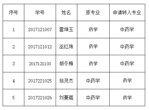 根據(jù)中國(guó)藥科大學(xué)繼續(xù)教育學(xué)院相關(guān)管理規(guī)定,2020級(jí)雷坤玉等5人因個(gè)人工作需要等原因,提出轉(zhuǎn)專業(yè)申請(qǐng),經(jīng)班主任審核,我站研究審議,該5名學(xué)生符合轉(zhuǎn)專業(yè)條件,同意轉(zhuǎn)專業(yè),并上報(bào)中國(guó)藥科大學(xué)繼續(xù)教育學(xué)院審批。