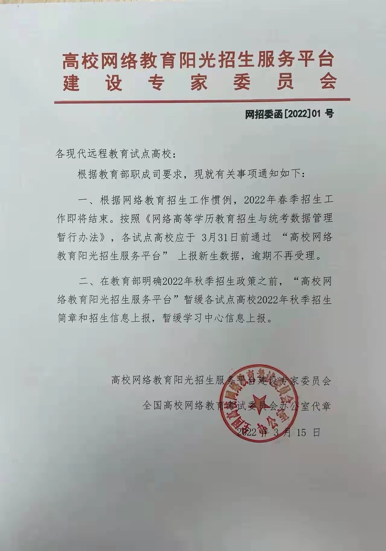 近日,北京中醫(yī)大學(xué)接網(wǎng)考辦通知,2022春新生上報(bào)數(shù)據(jù)日期仍為3月31日止,2022年秋季招生簡(jiǎn)章和招生信息在教育部明確秋季招生政策前暫緩上報(bào),故繼續(xù)教育學(xué)部將2022春季招生截止時(shí)間調(diào)整為2022年3月20日17點(diǎn),請(qǐng)有意向報(bào)名的考生安排好報(bào)名時(shí)間。