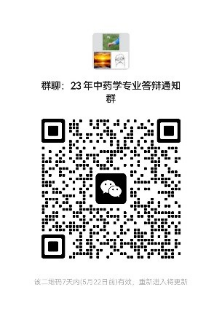 1.參加答辯的同學(xué),請(qǐng)掃下方二維碼加入中藥學(xué)專(zhuān)業(yè)答辯通知群,群昵稱(chēng)改為“姓名-學(xué)習(xí)中心”。務(wù)必及時(shí)關(guān)注該群內(nèi)消息(騰訊會(huì)議號(hào)等信息會(huì)在群內(nèi)通知)。