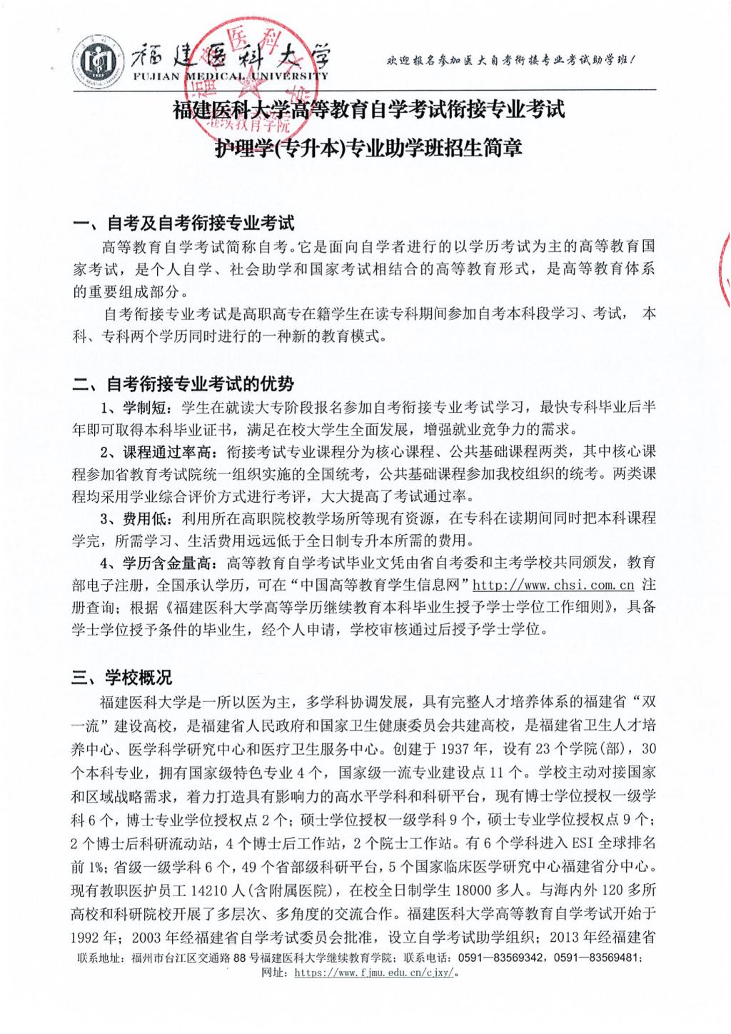 福建醫(yī)科大學(xué)高等教育自學(xué)考試銜接專業(yè)考試護(hù)理學(xué)(專升本)專業(yè)2025春助學(xué)班招生簡章