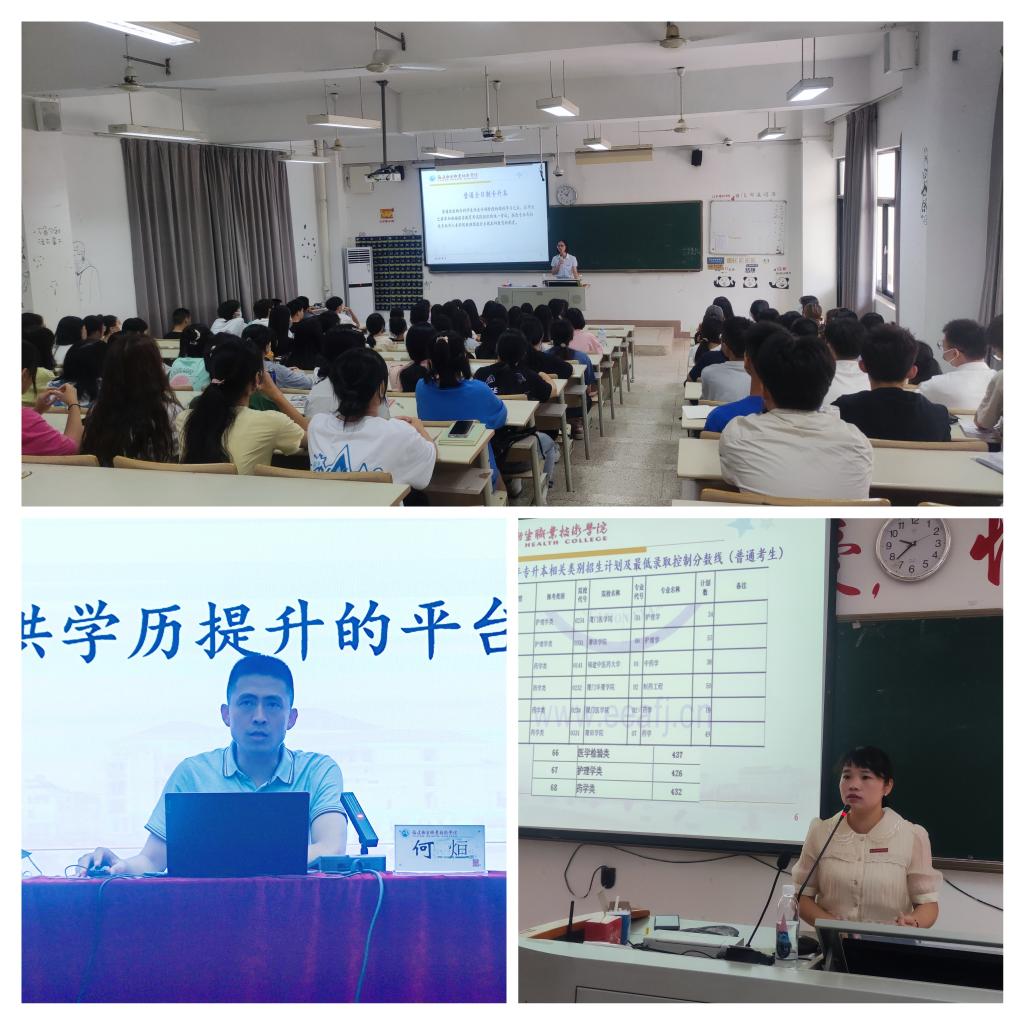 9月至10月期間,繼續(xù)教育學院、護理學院、藥學院建立全方位、多層次的招生宣傳體系,積極開展多種形式的招生宣傳工作,增強招生宣傳工作的有效性和針對性。一是充分發(fā)揮網(wǎng)絡(luò)宣傳主陣地作用,通過繼續(xù)教育學院官方網(wǎng)站、官方微信公眾號等網(wǎng)絡(luò)媒介,突出亮點,板塊鮮明,精準推送招生信息;在學校第一餐廳、明湖餐廳等地設(shè)置宣傳展板,詳細展示繼續(xù)教育學院相關(guān)業(yè)務(wù);將招生簡章發(fā)放至學生個人,以便學生能對本專銜接助學班有更深入細致了解。二是舉辦新生入學教育專場招生宣傳講座和主題班會,繼續(xù)教育學院副院長及相關(guān)負責同志與輔導(dǎo)員、班主任一同深入班級,走近學生,將自考本專銜接助學班的優(yōu)勢及課程安排等內(nèi)容進行詳細解說,進一步激發(fā)學生報考積極性。三是搭建學生和學校之間的交流平臺,舉辦線上專場招生答疑咨詢會,提供最權(quán)威、最專業(yè)的政策解答;設(shè)置招生熱線電話,專人負責,耐心解答各類招生咨詢,確保交流渠道的暢通。