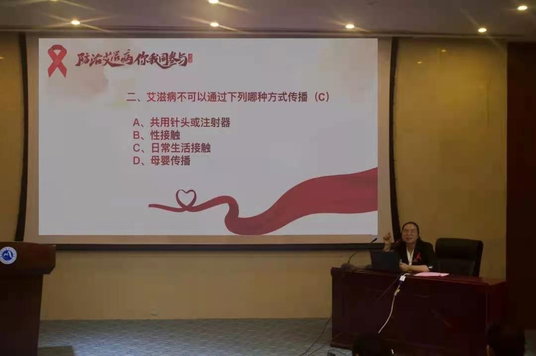 揭金花老師深入淺出地講解了艾滋病的發(fā)病機理、傳播途徑、防治措施,讓同學(xué)們深刻地了解艾滋病的嚴(yán)重危害,增強對艾滋病的認(rèn)識。最后呼吁大家共同努力早日實現(xiàn)零艾滋的目標(biāo)。