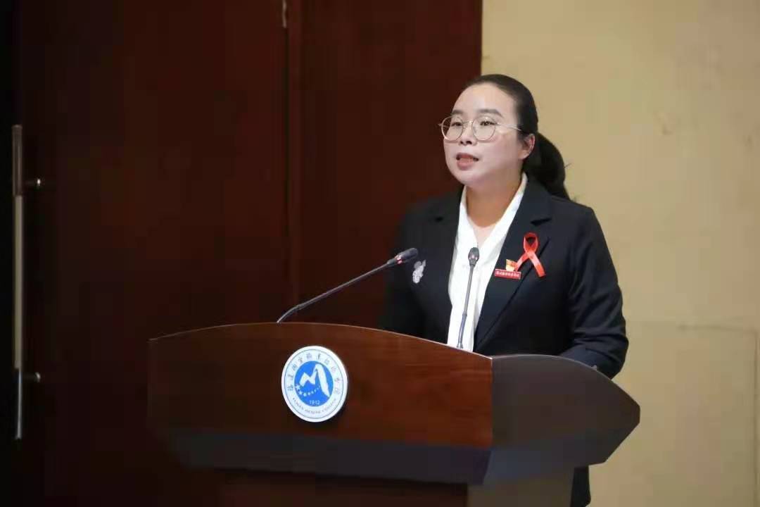 許能鋒院長主要介紹了艾滋病防治工作中的重點和難點問題,并向同學(xué)們提出三點倡議。一是唯有真自愛,方能真防艾。作為一名新時代的大學(xué)生,保持良好的生活習(xí)慣和生活作風(fēng),扎實地掌握和實踐艾滋病相關(guān)知識對自己的行為負(fù)責(zé),自尊自愛,積極正確地預(yù)防艾滋病的發(fā)生和傳播。二是唯有愛之名,無悔醫(yī)路行。作為一名醫(yī)學(xué)類院校的大學(xué)生,我們肩負(fù)著醫(yī)者仁心與使命、希望與榮光,更應(yīng)該正視艾滋,點亮反歧視之光,增強大眾防艾意識,傳播防艾知識技能,攜手防疫抗艾,遏制艾滋病的傳播。三是唯有愛之聲,絲帶以傳情。作為一名有仁愛之心的新青年,我們應(yīng)給艾滋病人以包容與善待,不要用歧視的眼光看待他們。