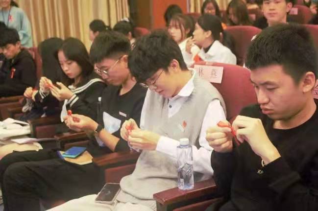 現(xiàn)場手工制作紅絲帶