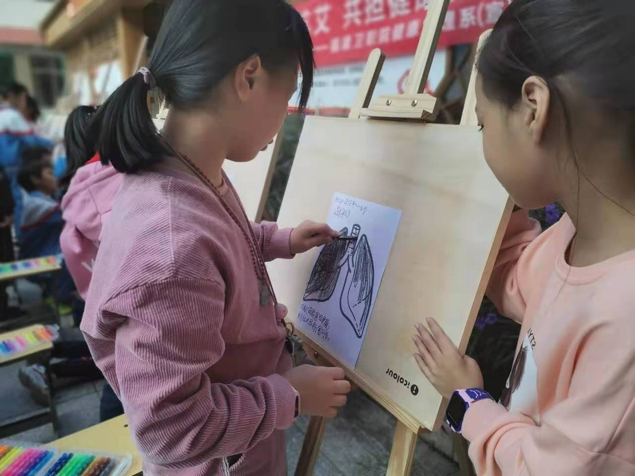 學(xué)校是人口密集的場(chǎng)所,學(xué)生群體復(fù)雜,相互接觸頻繁,受到學(xué)習(xí)負(fù)擔(dān)重、生活不規(guī)律、抵抗力差等因素影響,容易發(fā)生結(jié)核病。通過(guò)前期發(fā)放肺結(jié)核知識(shí)題庫(kù)擴(kuò)大知識(shí)面和現(xiàn)場(chǎng)開(kāi)展結(jié)核病防治知識(shí)競(jìng)賽促使小學(xué)生加深對(duì)結(jié)核病相關(guān)知識(shí)的了解。志愿者通過(guò)設(shè)立人形立牌、發(fā)放防治結(jié)核病宣傳單、利用肺涂色小游戲等多種小學(xué)生喜聞樂(lè)見(jiàn)的形式,增加宣教活動(dòng)趣味性的同時(shí),將結(jié)核防治知識(shí)傳遞給小學(xué)生,提高小學(xué)生對(duì)結(jié)核病相關(guān)知識(shí)的知曉率,在宣教的過(guò)程中增強(qiáng)志愿者與小學(xué)生之間的互動(dòng),使小學(xué)生了解防治結(jié)核病的知識(shí),樹(shù)立防治結(jié)核病的意識(shí)。
