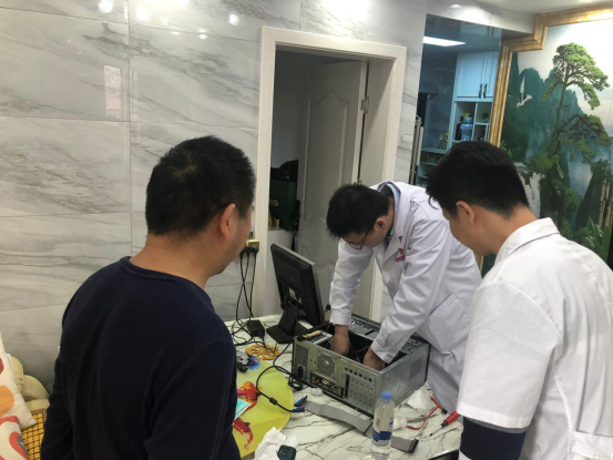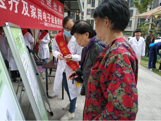 醫(yī)療及家用儀器維修, 貼心服務在入戶。由第二黨支部書記鐘偉雄老師帶隊,醫(yī)療設備應用技術專業(yè)的師生自備專門維修設備和耗材,滿足社區(qū)居民日常家用電子儀器的維修需要,同時用專業(yè)知識向居民宣傳家用小型醫(yī)療電子儀器的使用方法及保養(yǎng)常識?;顒又校瑤熒€針對個別居民家不方便搬動家電到現(xiàn)場的特殊情況,開展入戶上門檢測和維修服務,用專業(yè)技能“喚醒點亮”廢舊家電。