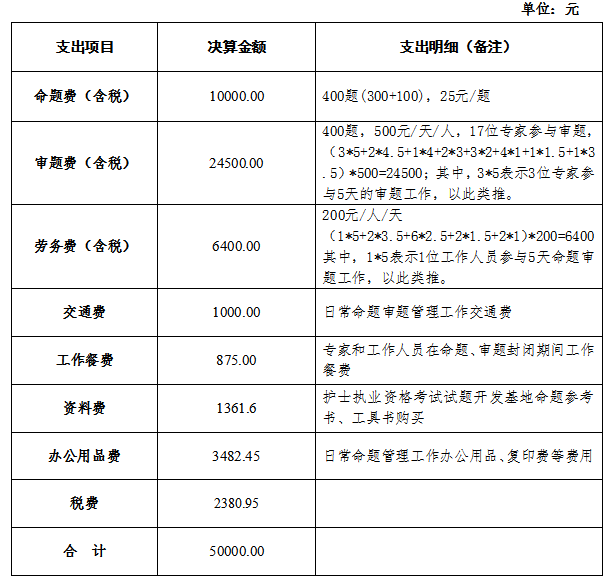 2020-2021年度護士執(zhí)業(yè)資格考試試題開發(fā)基地決算單公示