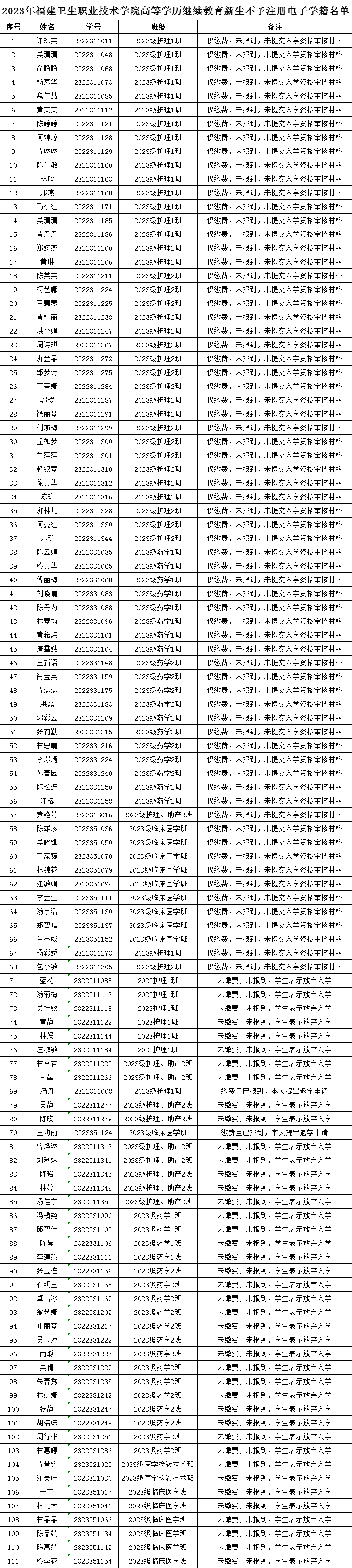 關(guān)于2023級福建衛(wèi)生職業(yè)技術(shù)學院高等學歷繼續(xù)教育許珠英等111名學生不予注冊電子學籍的公告