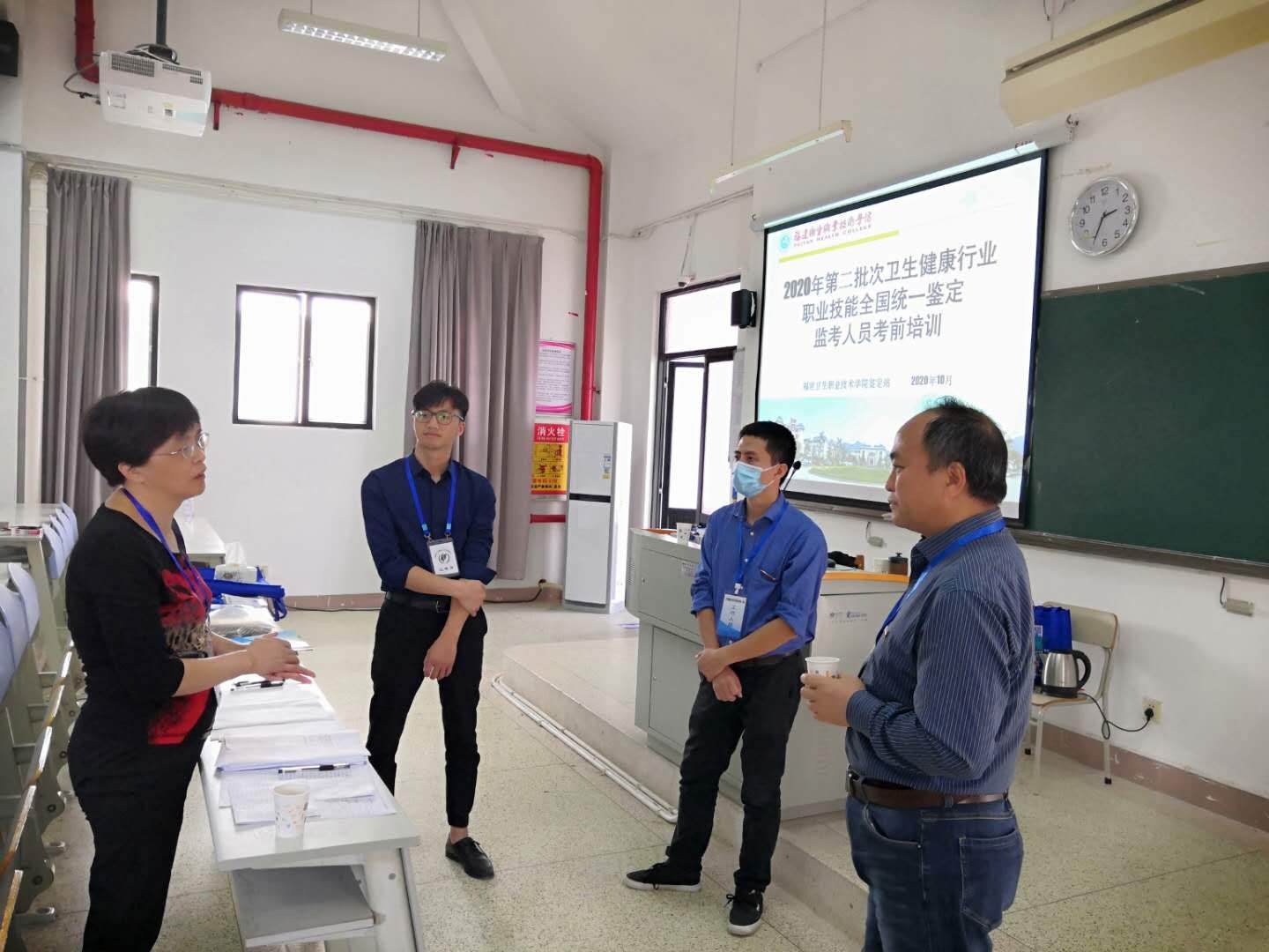 鑒定工作期間,國家、省、市衛(wèi)健委巡考員等一行在學(xué)院領(lǐng)導(dǎo)的陪同下巡視鑒定站考場(chǎng)并指導(dǎo)工作。