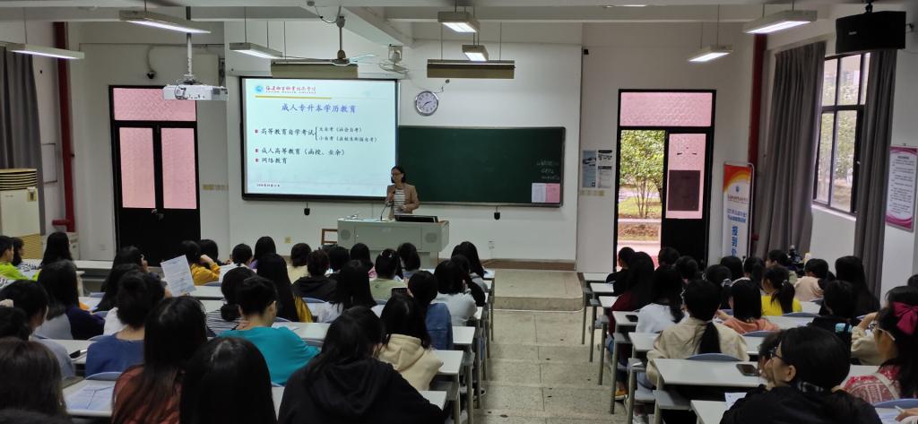 3、舉辦新生入學(xué)教育專場招生宣傳講座和主題班會,與輔導(dǎo)員一同走進(jìn)學(xué)生,對自考本專銜接助學(xué)班的優(yōu)勢及課程安排等內(nèi)容進(jìn)行宣講,進(jìn)一步激發(fā)學(xué)生報考積極性。