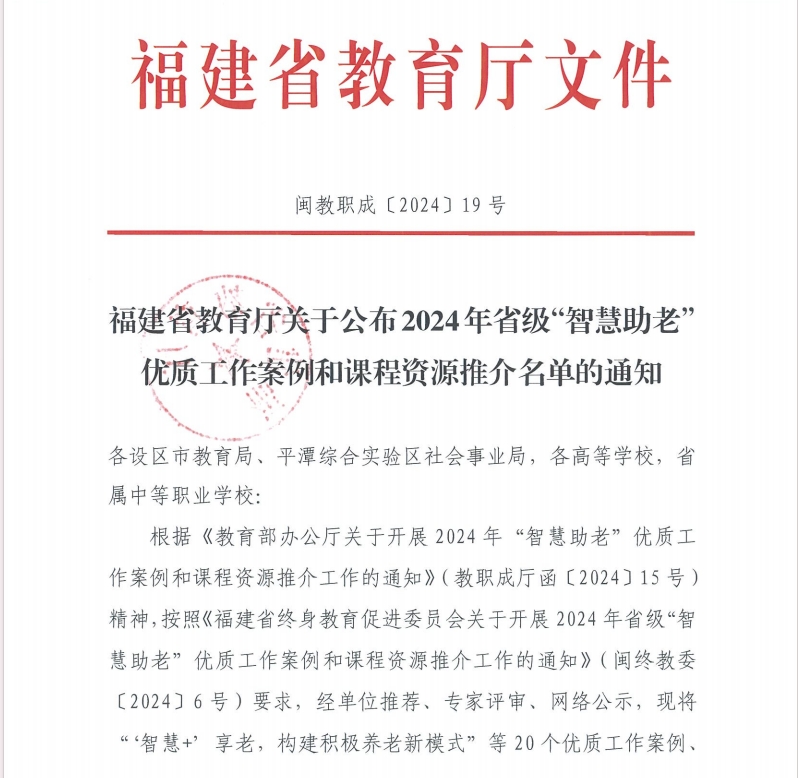 喜報 | 我校成功入選2024年省級“智慧助老”優(yōu)質(zhì)課程資源推介名單