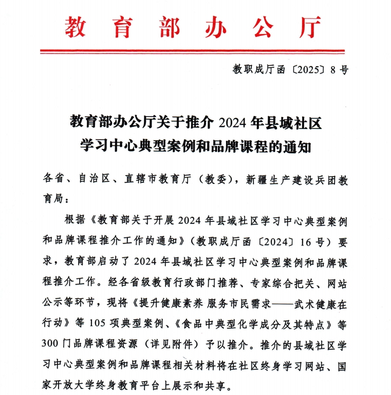 喜報丨我校申報課程入選教育部2024年縣域社區(qū)學(xué)習(xí)中心品牌課程推介名單