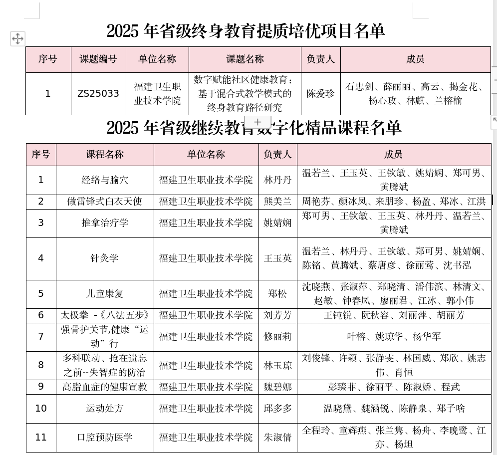 近日,福建省教育廳公布2025年省級(jí)終身教育重點(diǎn)項(xiàng)目名單,我校憑借扎實(shí)的教學(xué)積淀與創(chuàng)新的課程建設(shè),共有 12項(xiàng)成果成功入選。