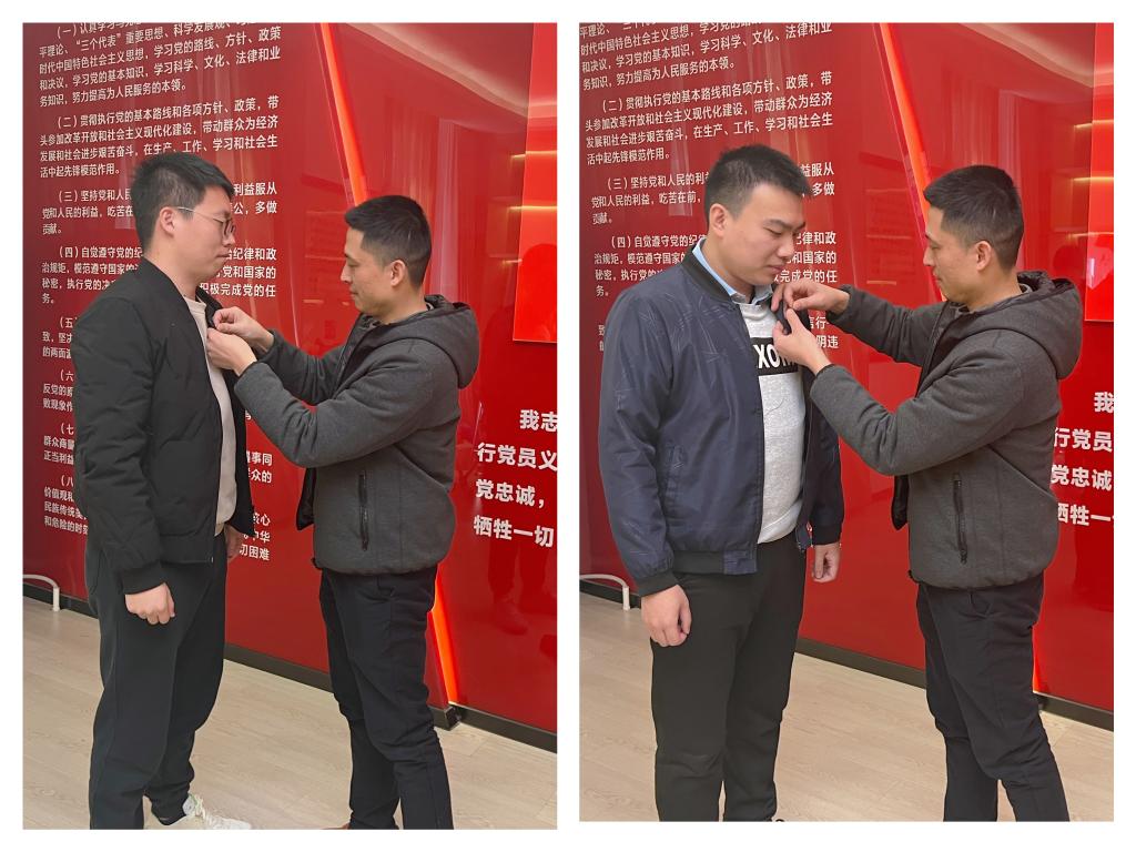 宣誓結(jié)束后,何烜為新黨員佩戴黨員徽章,對光榮加入中國共產(chǎn)黨的新黨員們表示熱烈祝賀。他指出,加入黨組織是人生新的起點、新的開始,要真正成為合格的、優(yōu)秀的共產(chǎn)黨員,還有很長的路要走。他對新黨員提出三點希望:一是希望大家筑牢思想根基,強(qiáng)化理論武裝,做一名真正的馬克思主義者;二是希望牢記入黨誓詞,自覺遵守黨的章程,不忘入黨初心;三是希望大家把黨員先進(jìn)性目標(biāo)與自己的本職工作緊密結(jié)合起來,在工作中充分發(fā)揮黨員的先鋒模范作用。
